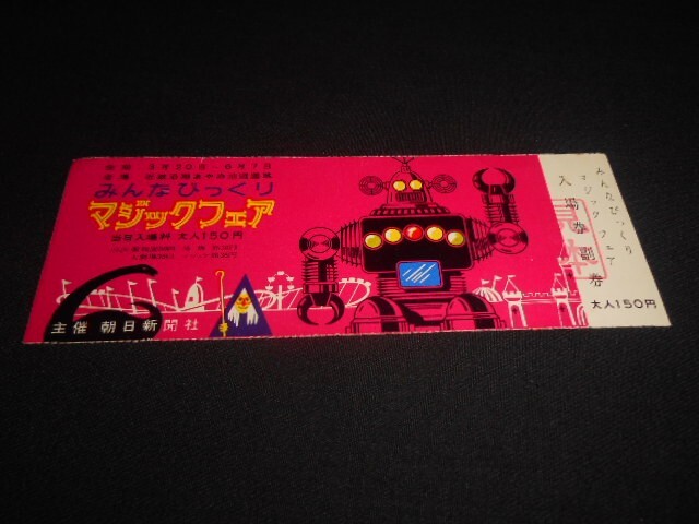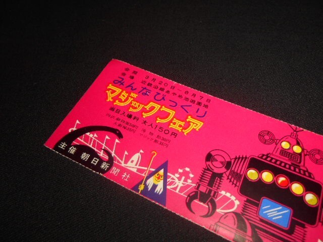 近鉄 あやめ池遊園地(廃園)みんなビックリ マジックフェア入場料大人150円 副券付 見本印 昭和39年 送料110円