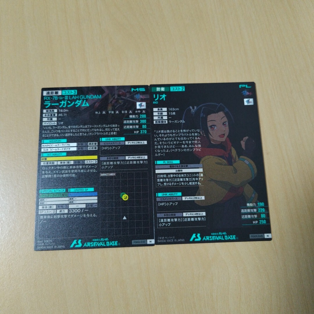 ガンダムアーセナルベース、Mレア、ラーガンダム&リオの出品となります。未使用品です。排出後、スリーブに入れて保管していますが初期キズなど気になさる方はご遠慮ください。配送料金は梱包代込みで全国一律、120円とさせていただきます。他の出品との同梱は対応いたします。ノークレム、ノーリターンにてお願いいたします。