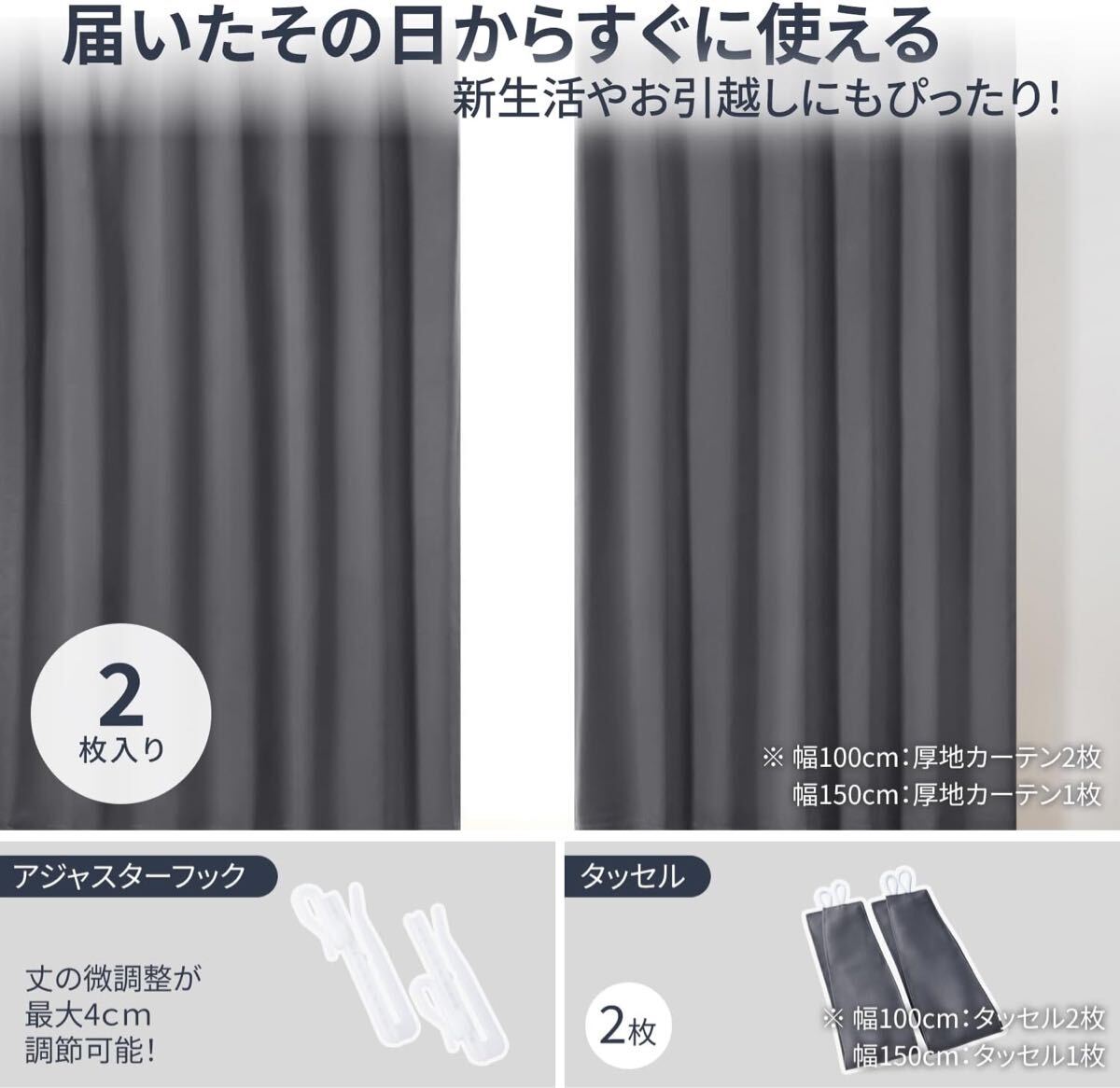 ■付属品 タッセル2本、アジャスターフック ■1.5倍ヒダ 仕上がり幅の約1.5倍の生地を使用し、美しいヒダと高い遮光・保温性を実現。