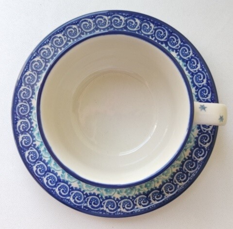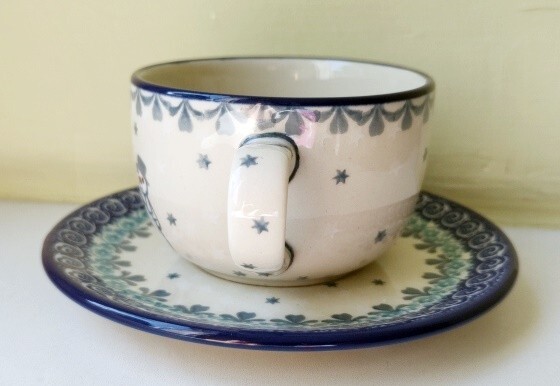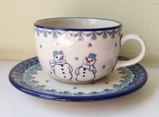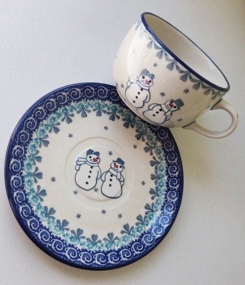 x833 ポーランド陶器 0.2Lカップ&ソーサー 雪だるま 星 ポーリッシュポタリー 食器