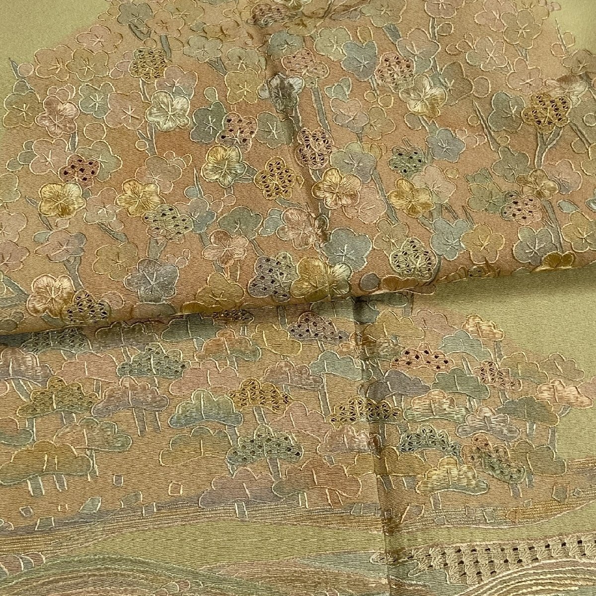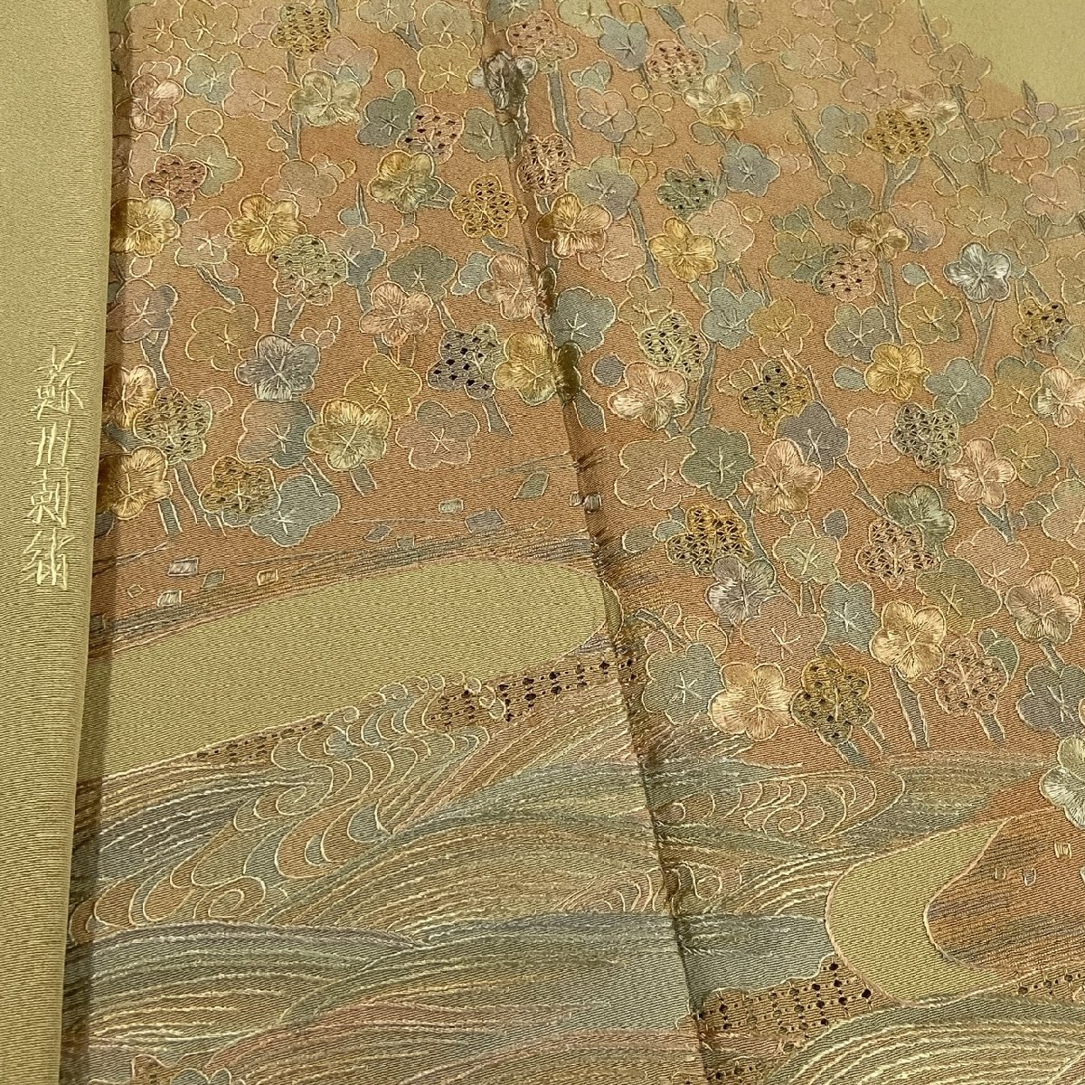 着物月花 総刺繍 蘇州刺繍 仙頭刺繍 ぼかし染 品のある花 色留袖 未使用品 正絹 縮緬 三つ紋 ki6710