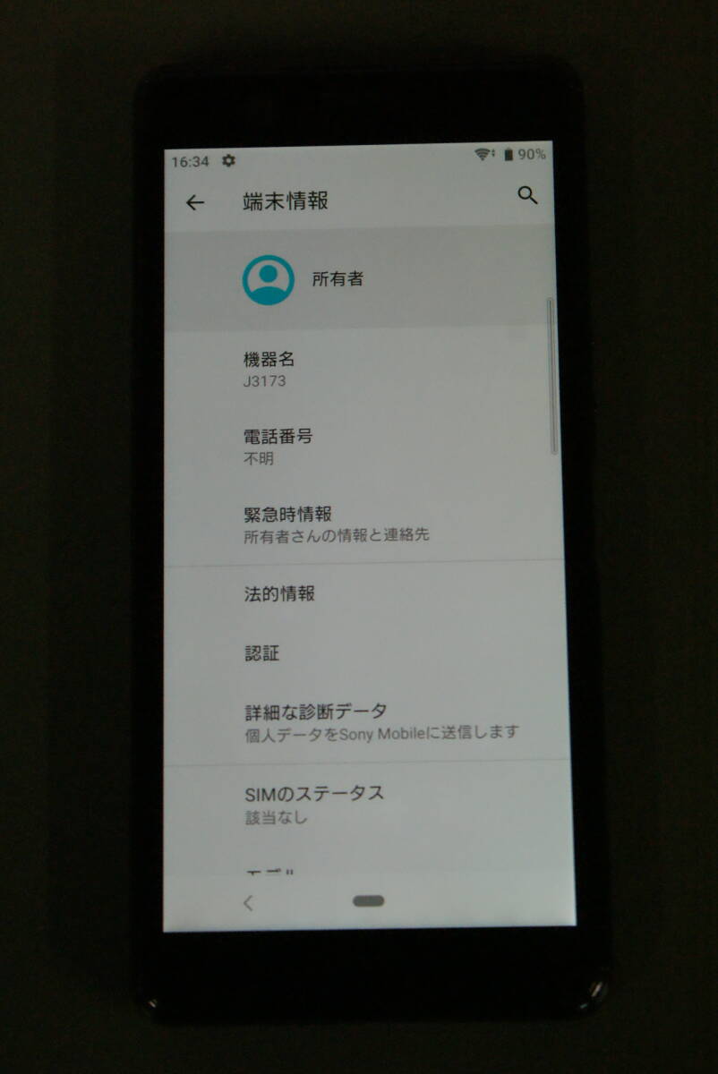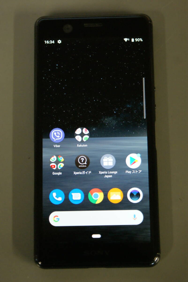 Sony 社製のスマートフォン端末です。キャリアは Rakuten ですがSIMフリーモデルです。ストレージ容量は64GBで、OSは Android 9 となっております。