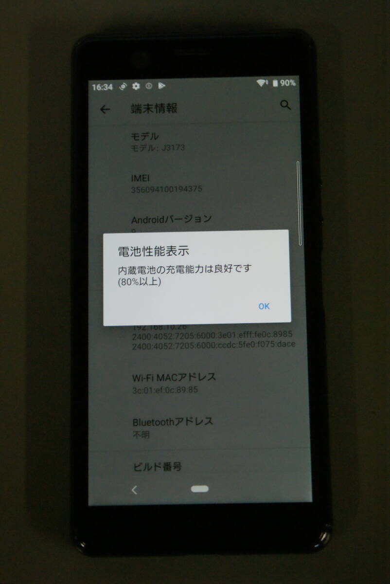 電池性能表示では、内蔵電池の充電能力は良好です(80%以上) となっております。