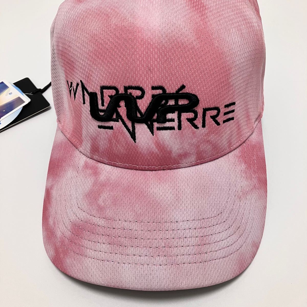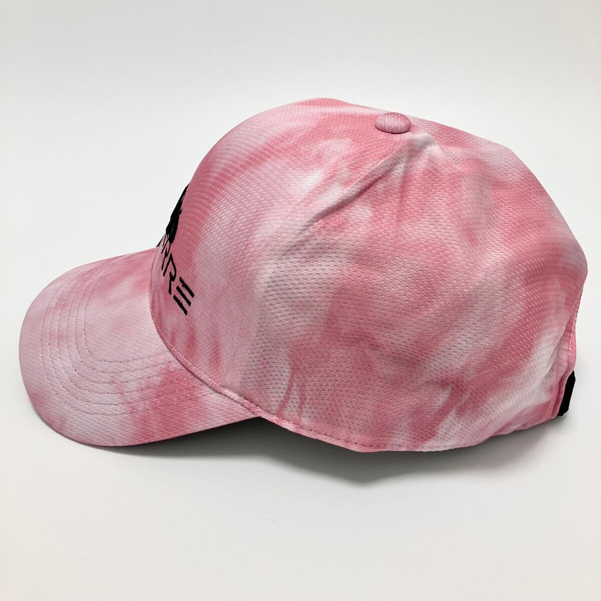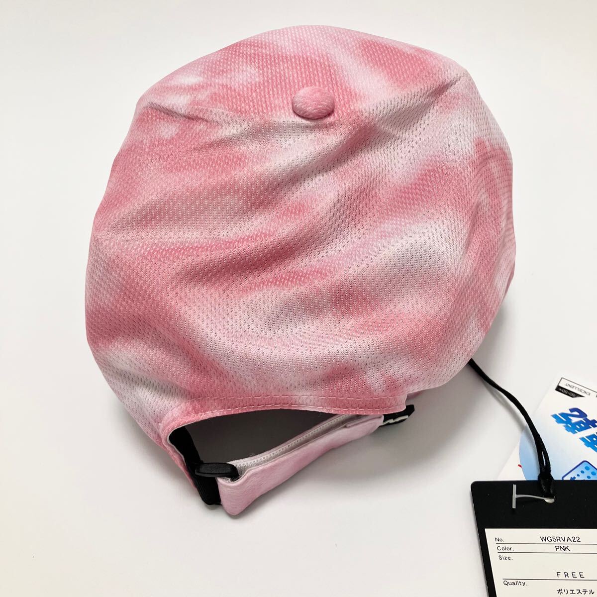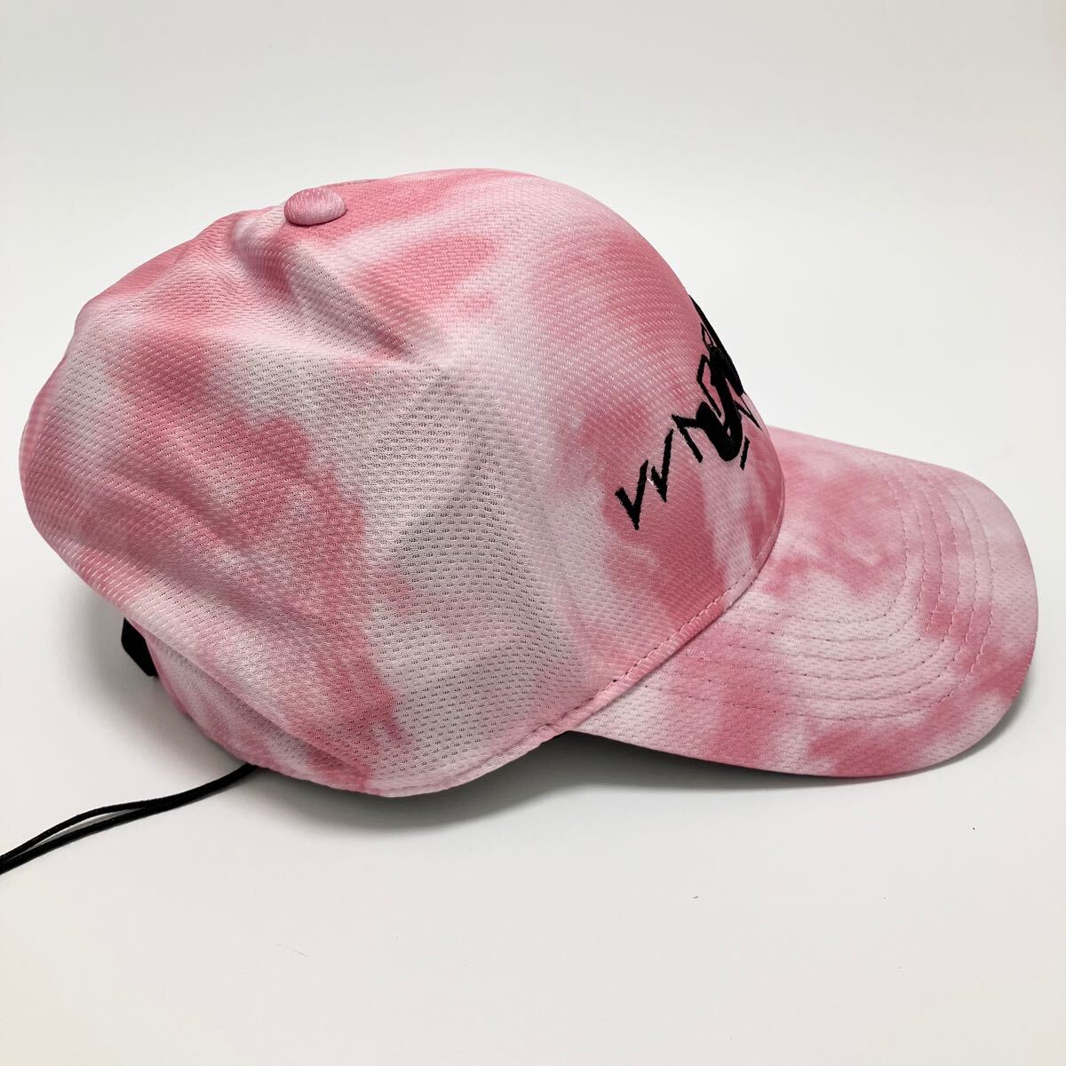 正面にブランドのロゴマークの文字刺繍が入ったマーブル柄キャップです。サイズ調整が可能なので男性女性問わず着用していただけます。