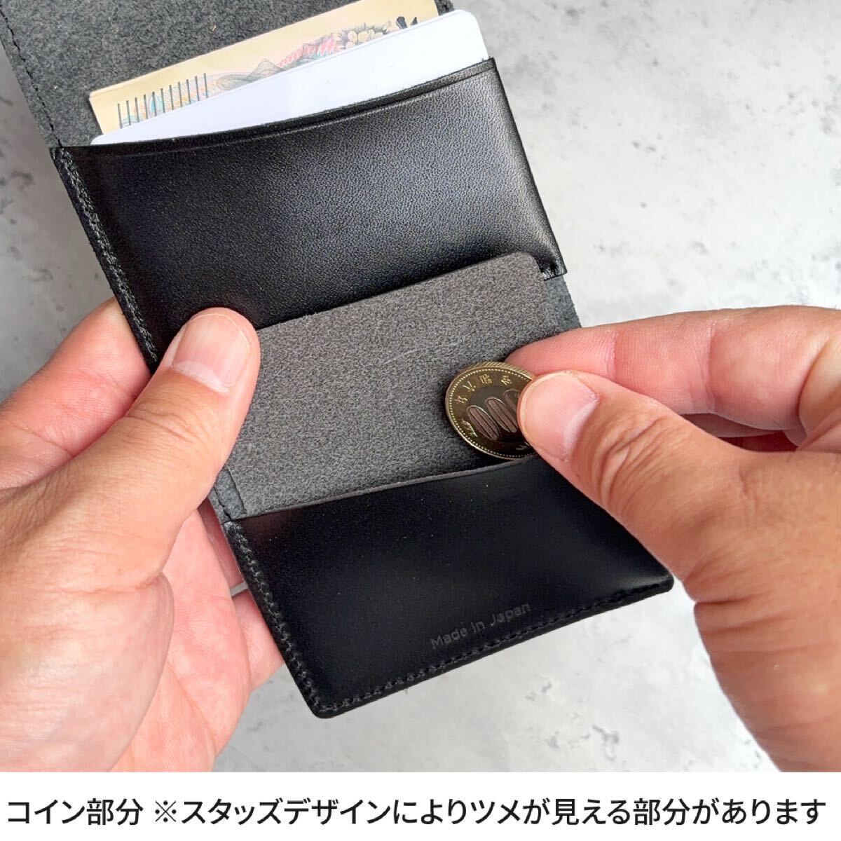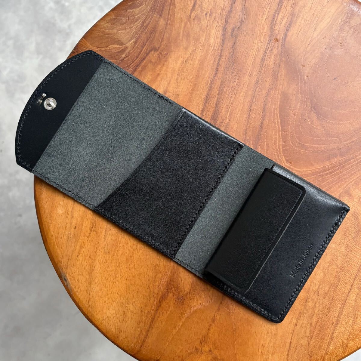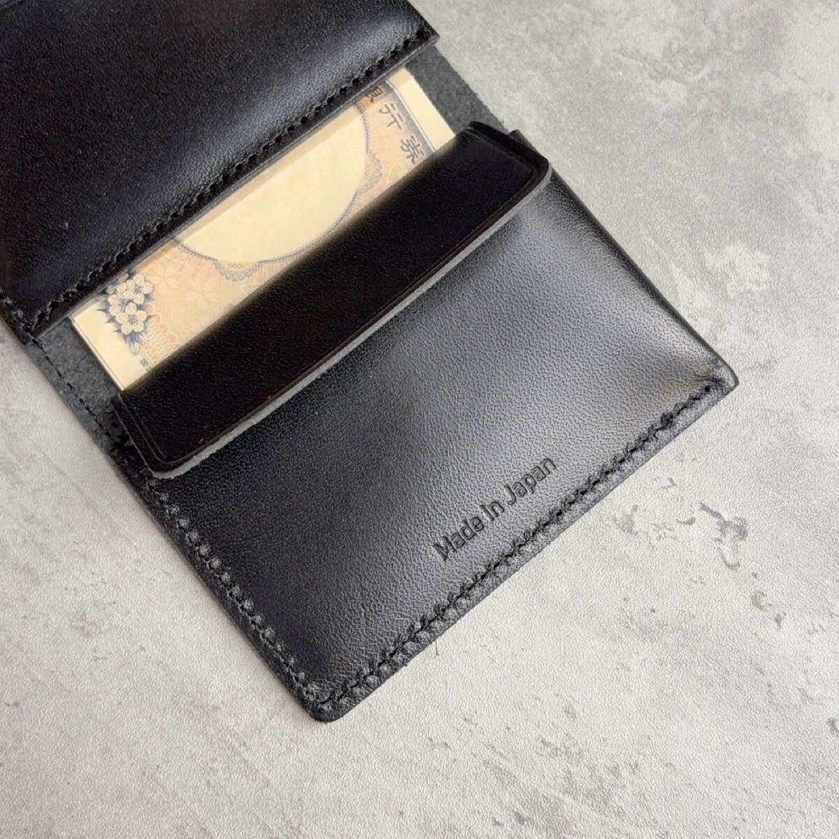 紙幣・小銭・カードをスマートに収納できる設計で、ポケットや小さなバッグにもすっきり収まるサイズ感。キャッシュレス時代にも対応したミニマルな財布ながら、必要な機能をしっかり備えています。