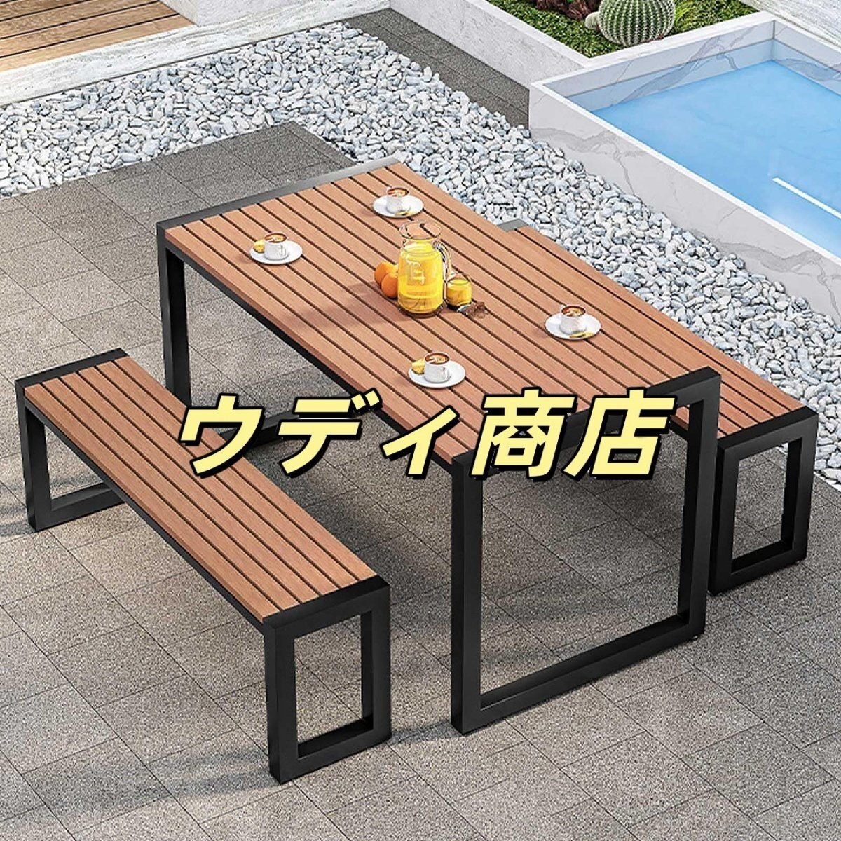 高品質の素材:ガーデン テーブルセットは、防水性、耐日光性、耐紫外線性を備えた高品質のプラスチック木材で作られています。長期間使用してもひび割れたり、色あせたり、腐ったりしません。庭やテラス、カフェなどの屋外シーンに最適です。 炭素鋼フレーム: ベランダ テーブ