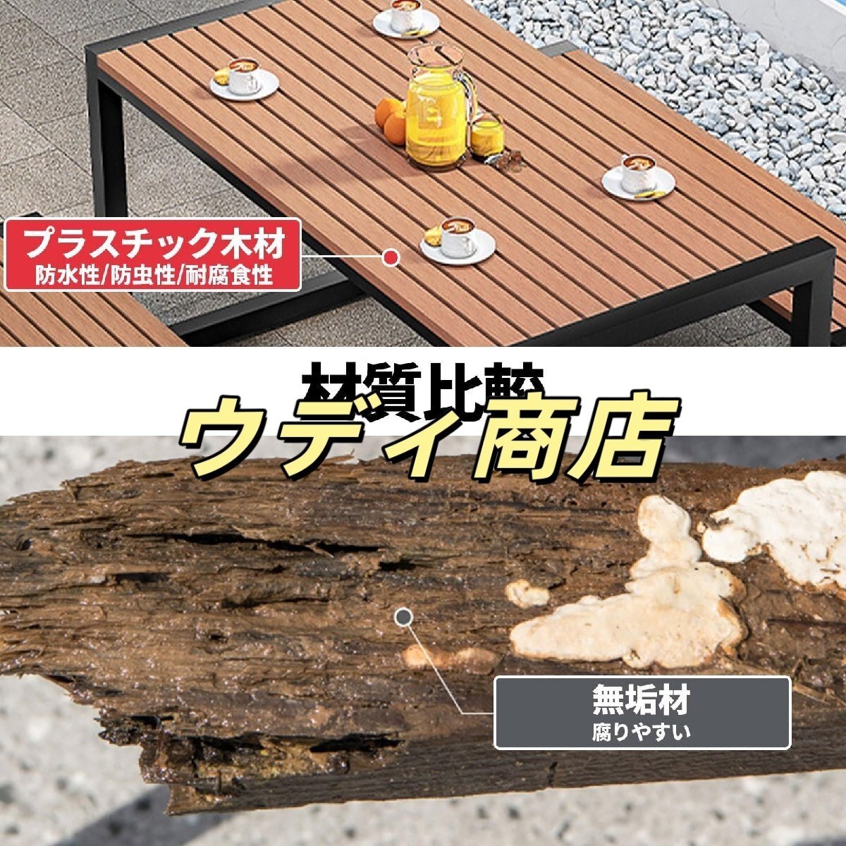 高品質の素材:ガーデン テーブルセットは、防水性、耐日光性、耐紫外線性を備えた高品質のプラスチック木材で作られています。長期間使用してもひび割れたり、色あせたり、腐ったりしません。庭やテラス、カフェなどの屋外シーンに最適です。