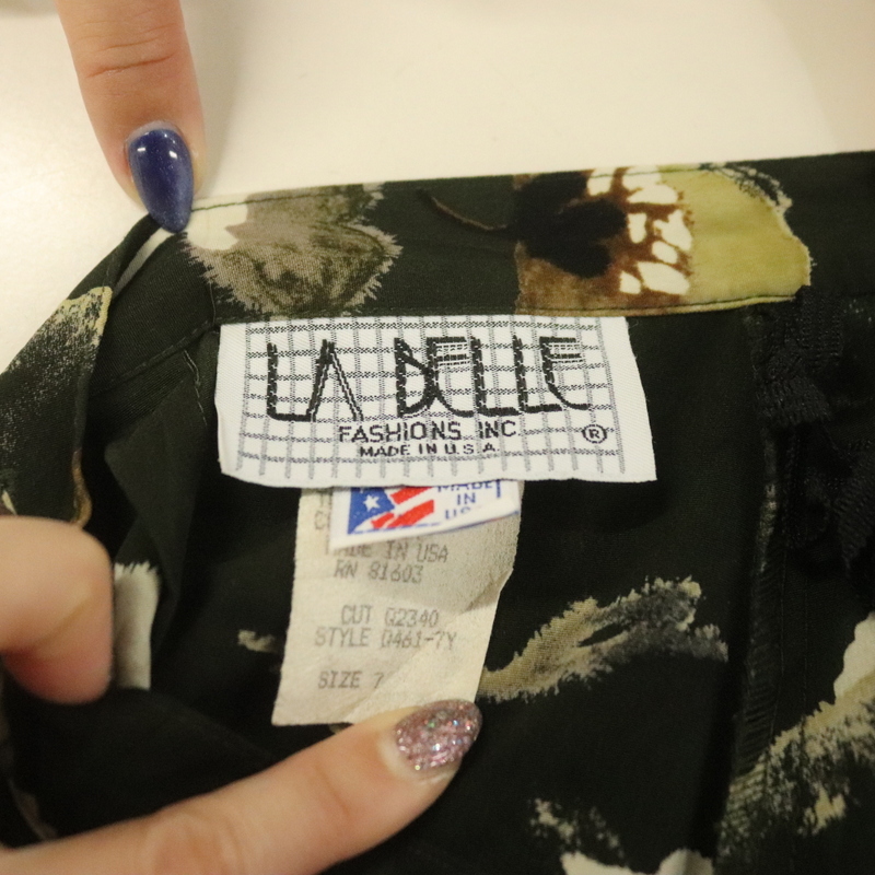 商品名 I672 80sビンテージ LABELLE ポリエステル 総柄スカート USA製■1980年代製 表記7サイズ グリーン 花柄 フラワー サイケ アンティーク