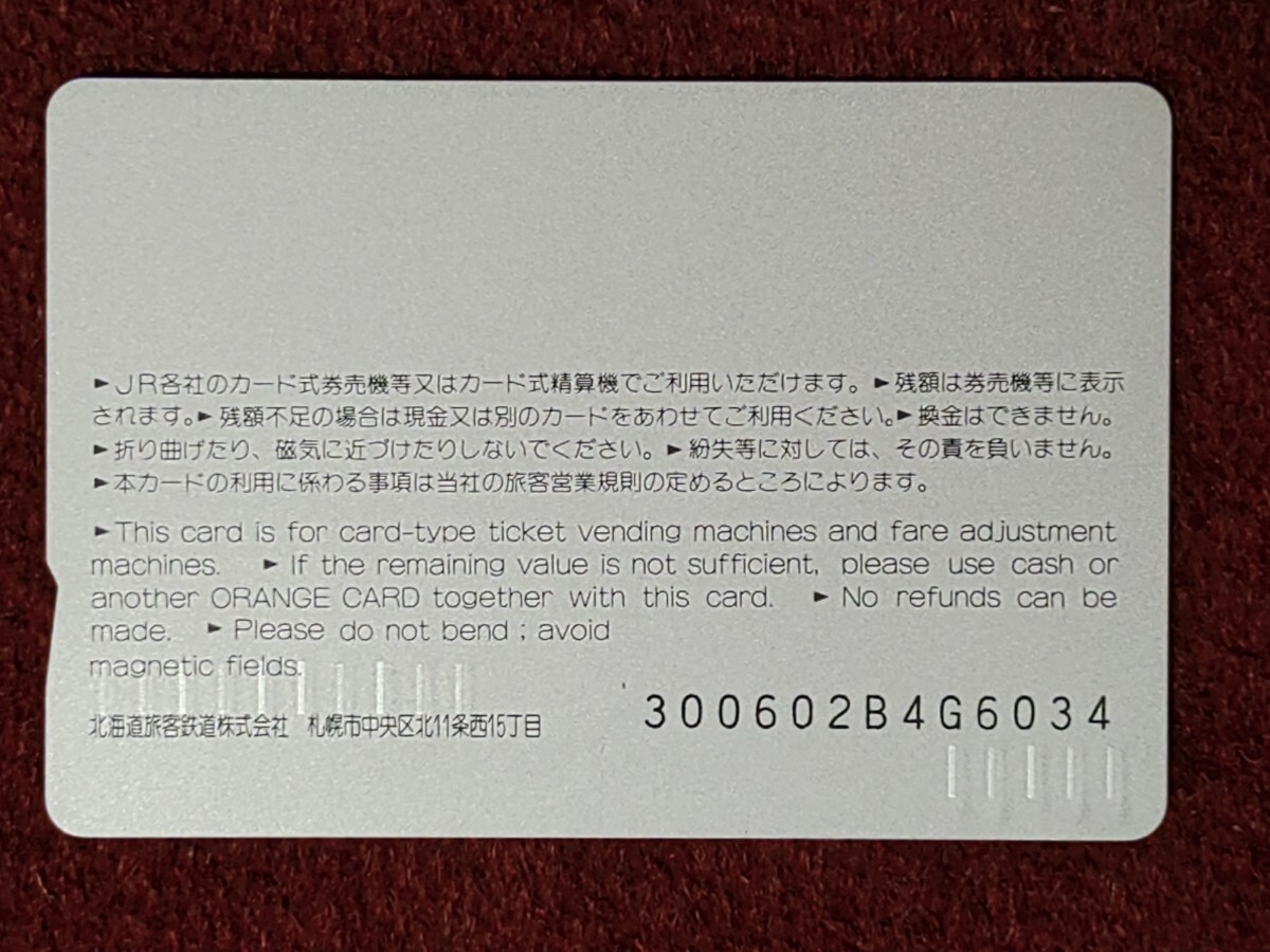ごく稀に磁気不良の場合があります。その場合は申し訳ありませんがJR各社・主な駅のみどりの窓口まで持ち込んでいただき、返金処理をお受け願います(国鉄・JR他社のカードも返金してくれます。少々日数がかかります)。