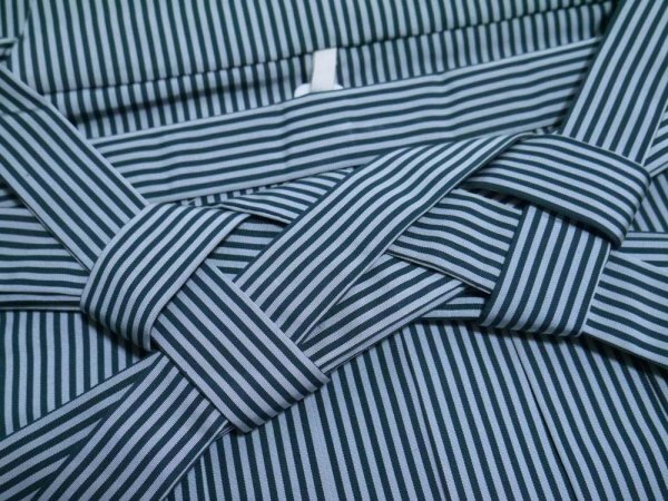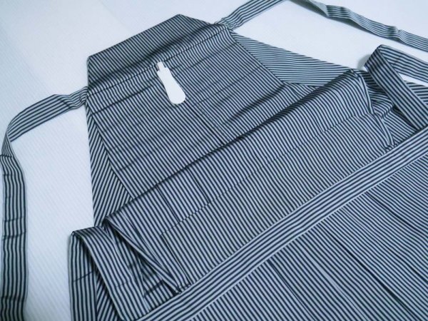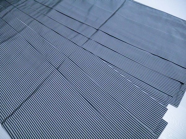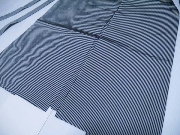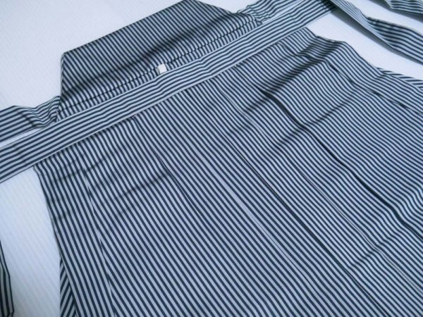 【KIRUKIRU】美品 男性和装用 馬乗り袴 正絹 縞柄 グレー×黒に近い深緑 着付け 呉服 着物 kimono hakama