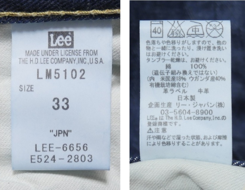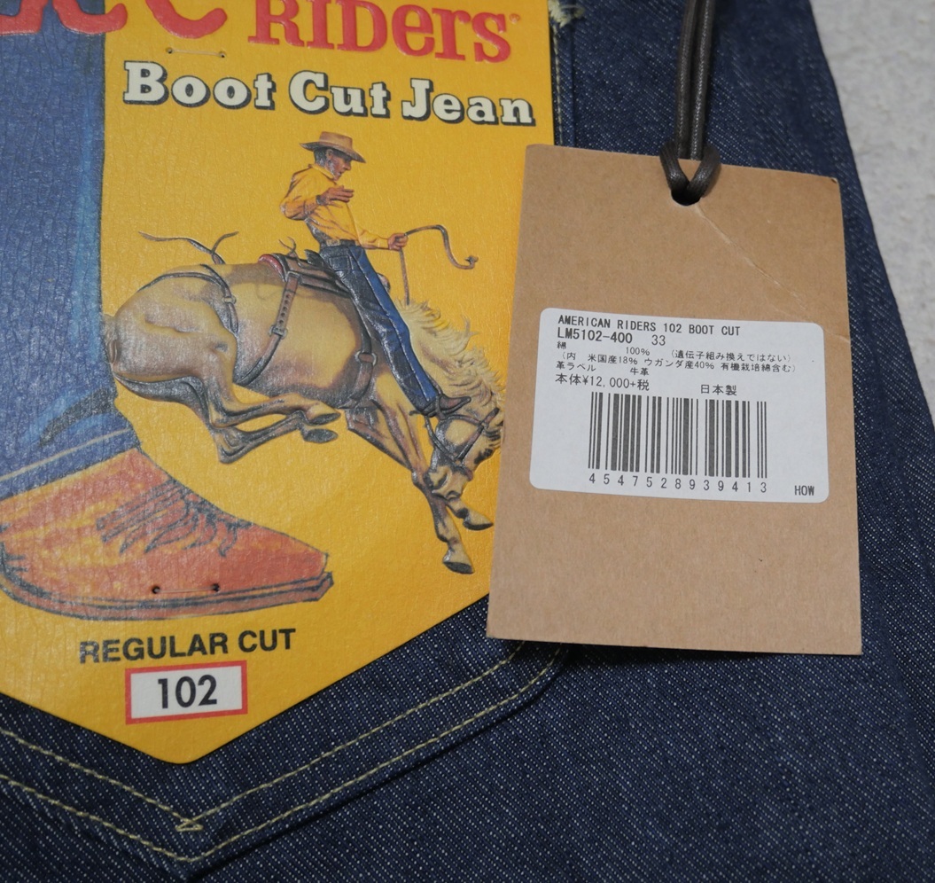 未使用品 Lee LM5102 AMERICAN RIDERS ブーツカット デニムパンツ 紺 33 ジッパーフライ オーガニックコットン リー ジーンズ 102