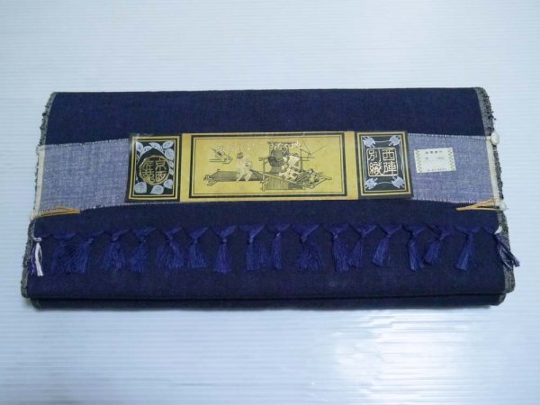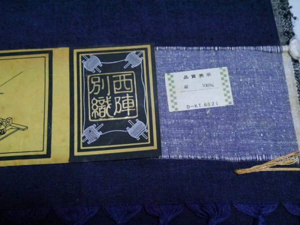 男物アンサンブル紬着物反物/西陣別織/紺地/無地