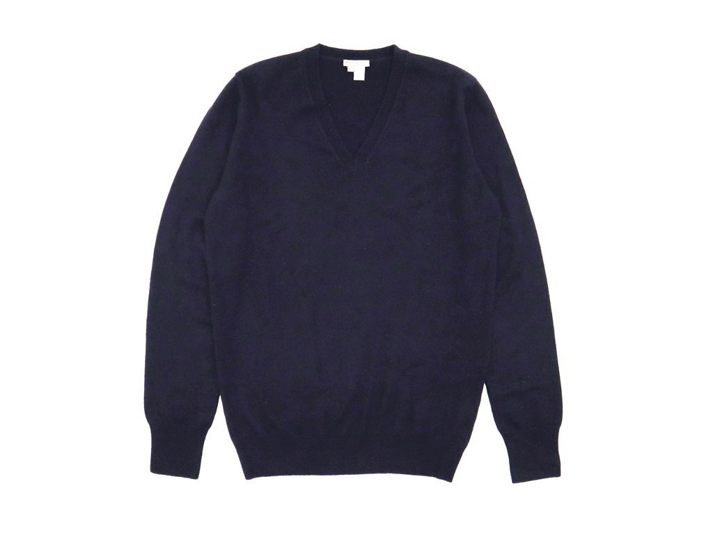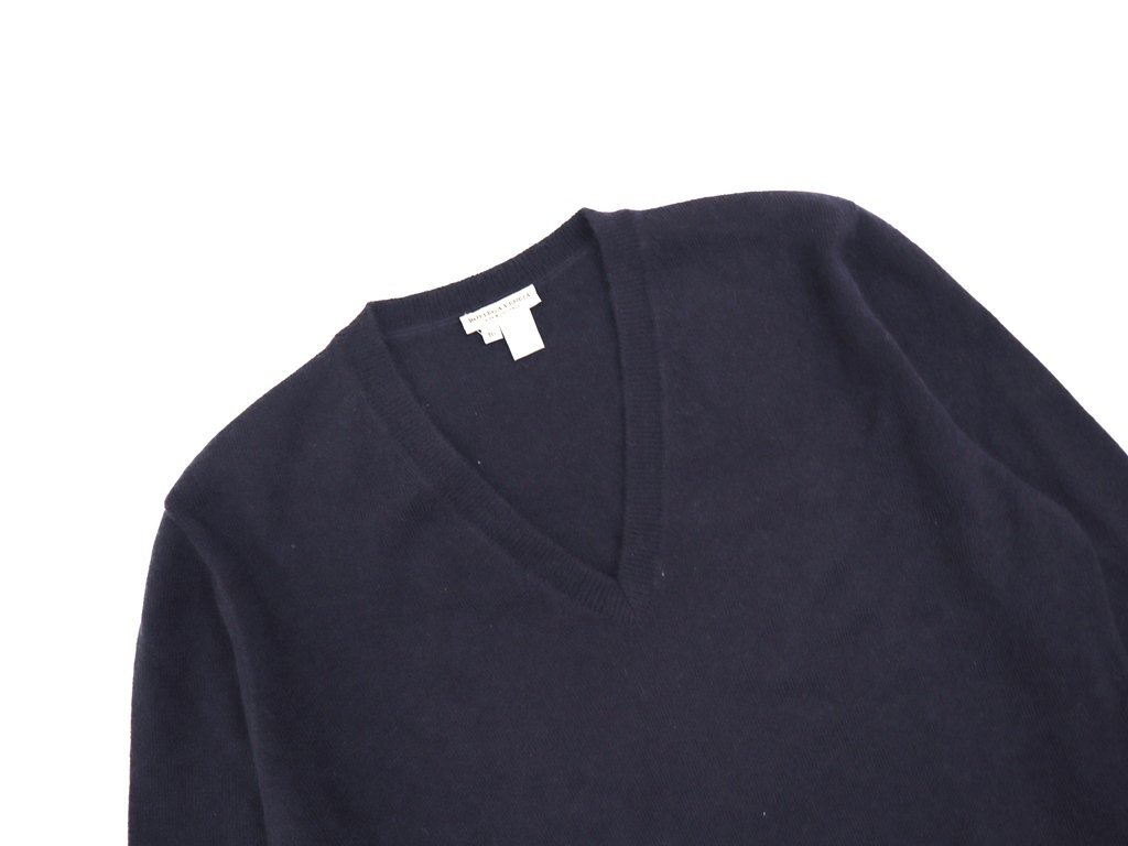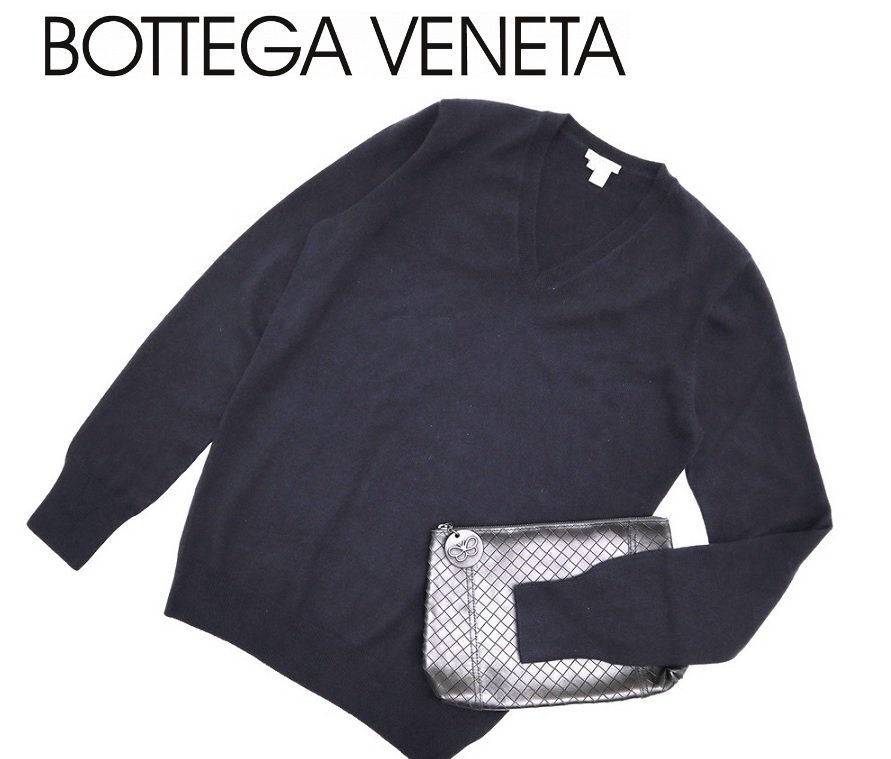 35万新品◆46=S◆ボッテガヴェネタ 最高級カシミヤ100% シンプルVネックニットセーター 紺ネイビー BOTTEGA