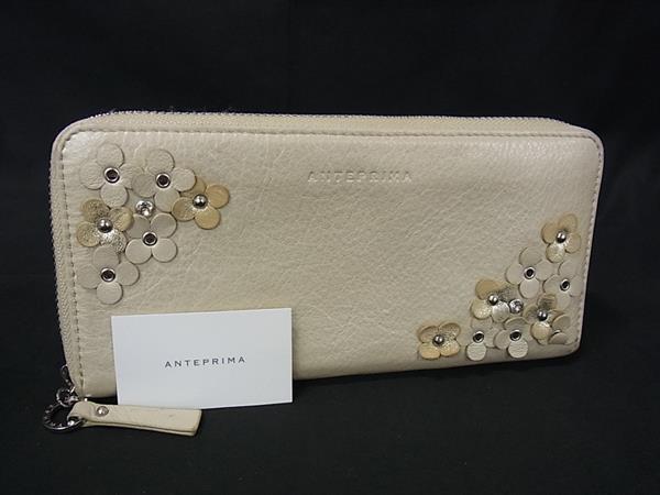 ANTEPRIMA アンテプリマ レザー フラワー 花 ラウンドファスナー 長財布 ウォレット 小銭入れ 札入れ アイボリー系 DK4510