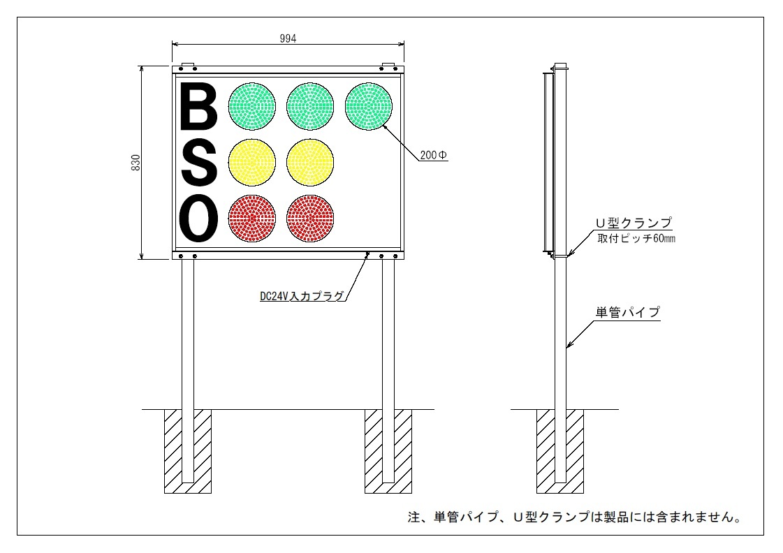 設置場所:本製品は全天候型屋外常設タイプです。壁、支柱等で防風対策を行って設置願います。