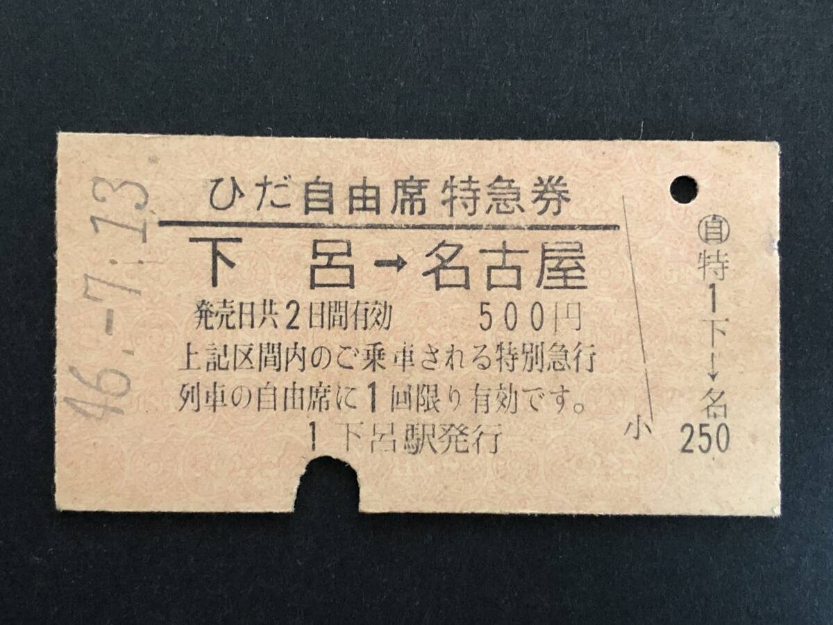 切符☆ひだ☆自由席特急券☆下呂→名古屋