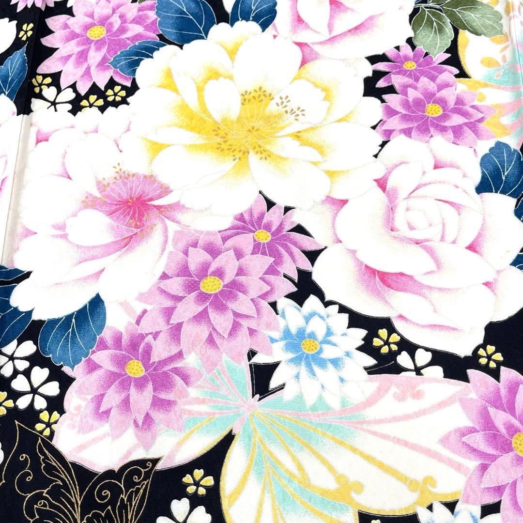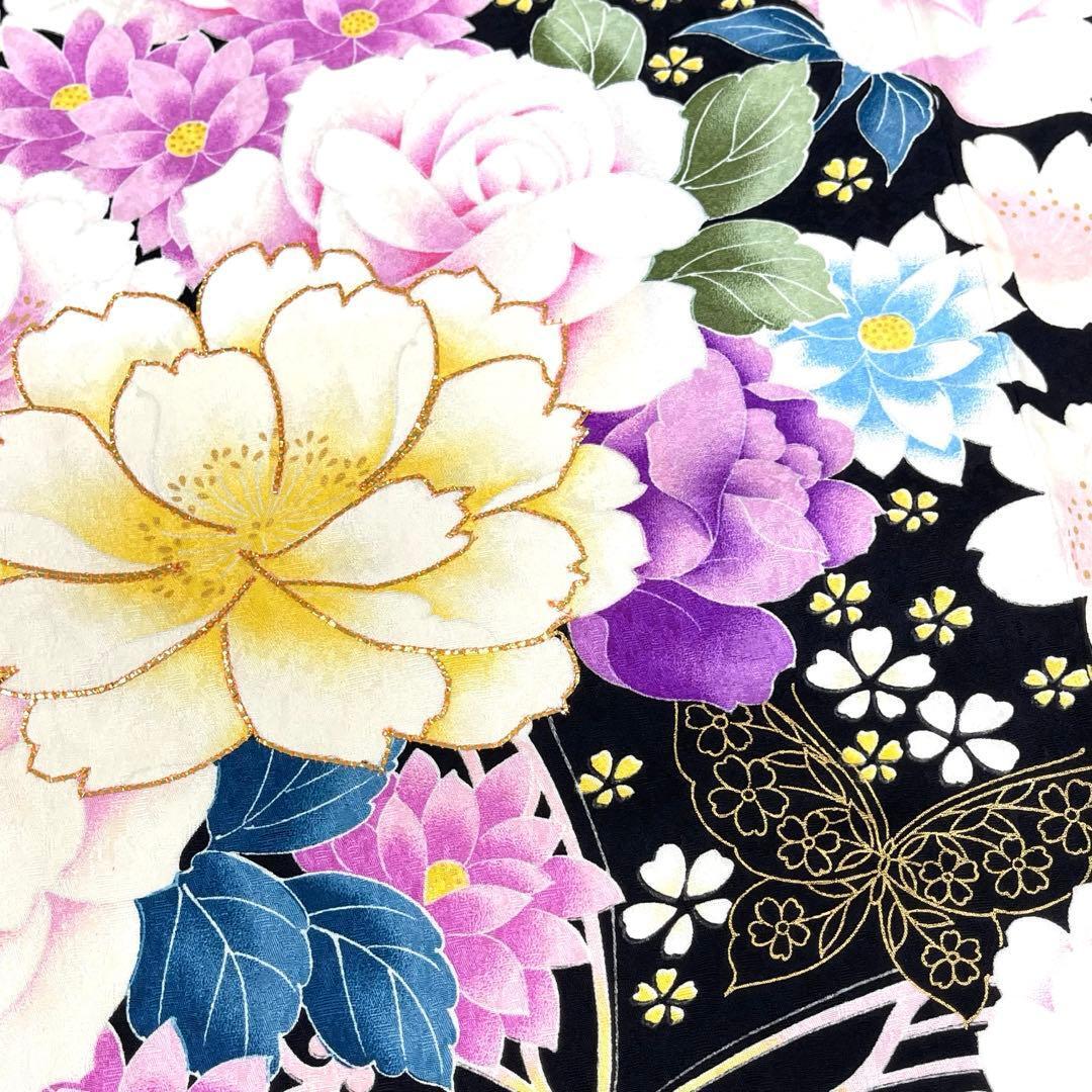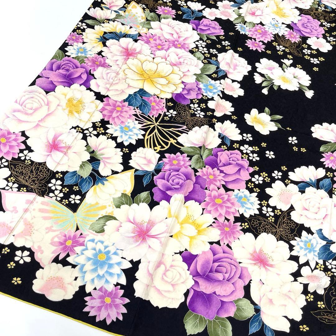 黒地に映える華やかな薔薇や牡丹の花々が咲き誇る、