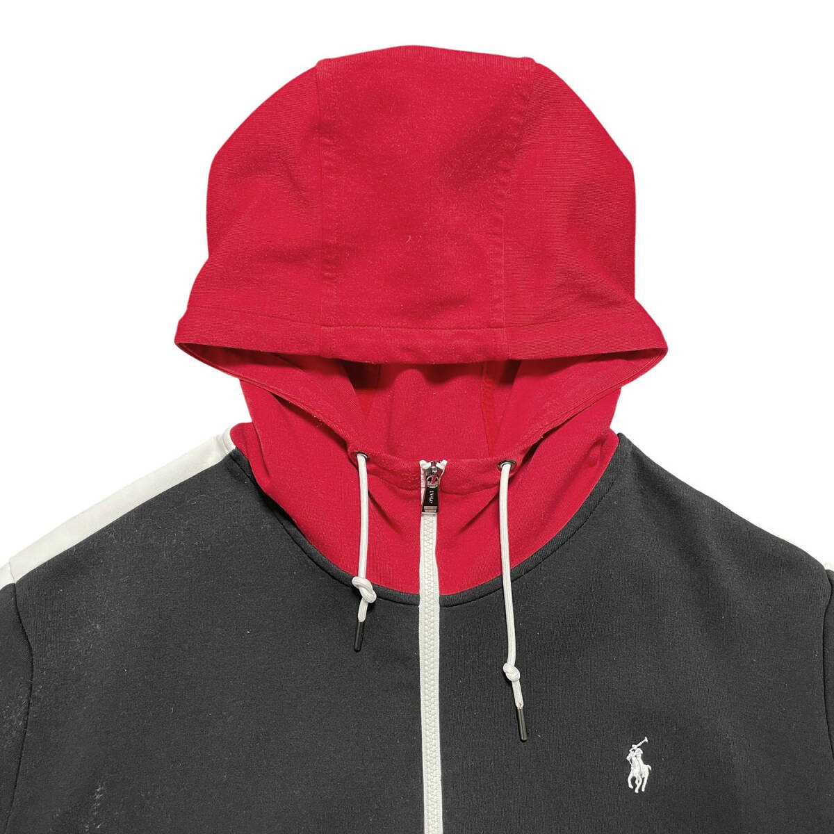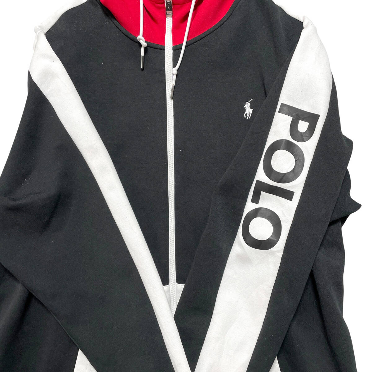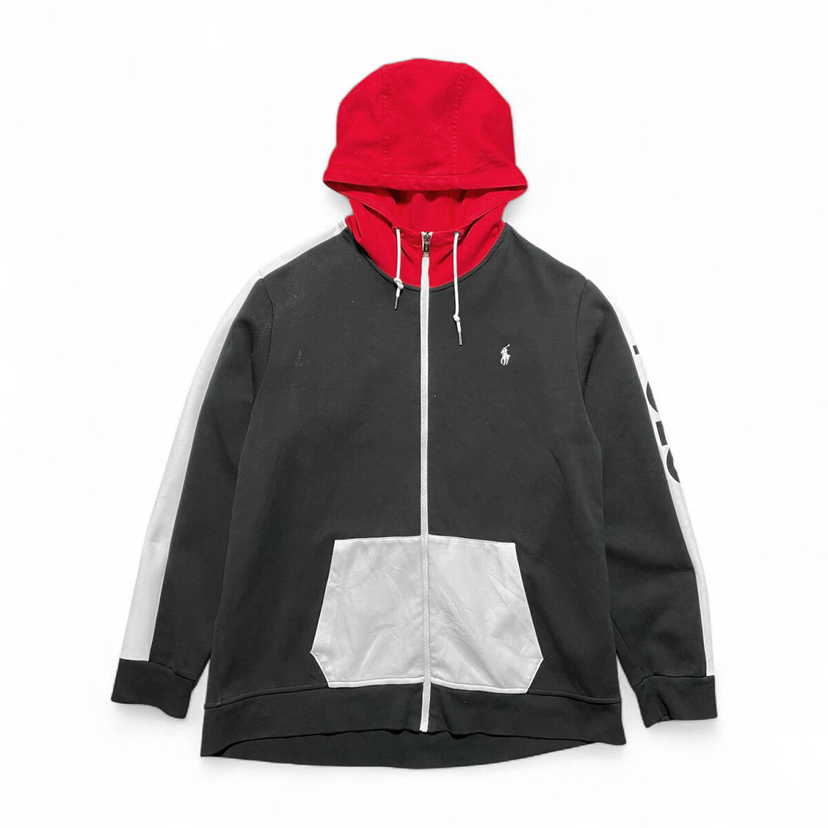 USA 古着 Polo Ralph Lauren ポロラルフローレン ジップアップ スウェット パーカー 袖プリント メンズXXL 大きいサイズ BE0880