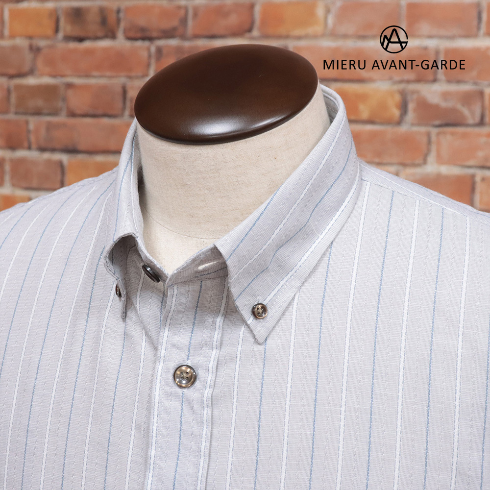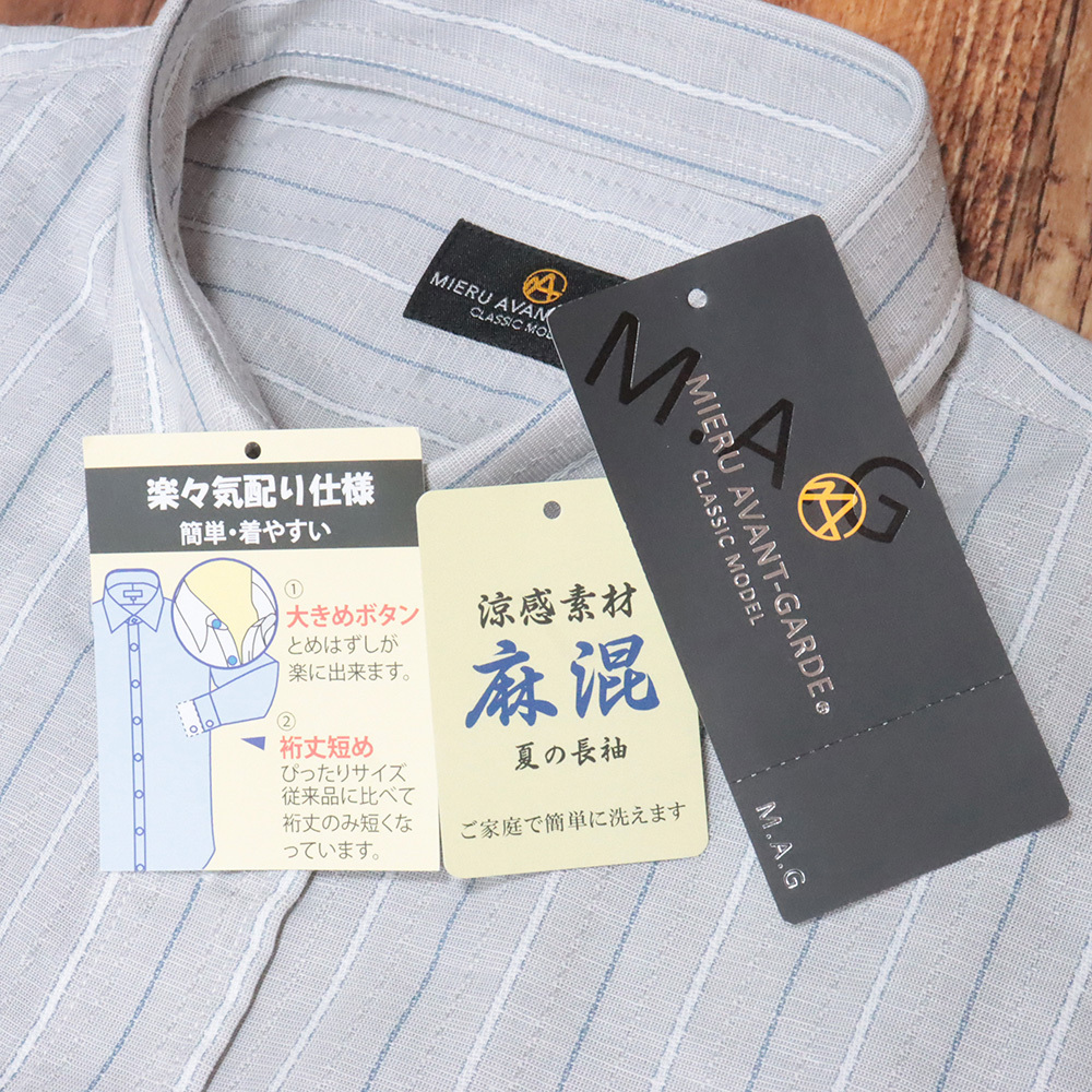 1円/春夏/MIERU/Lサイズ/長袖シャツ 裄丈短め ボタンダウン 麻混 涼感 イージーケア 新品/グレー/kh137/