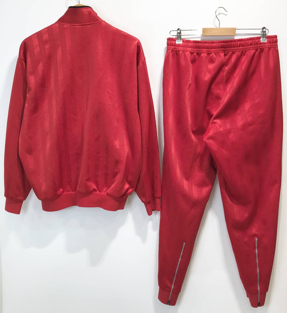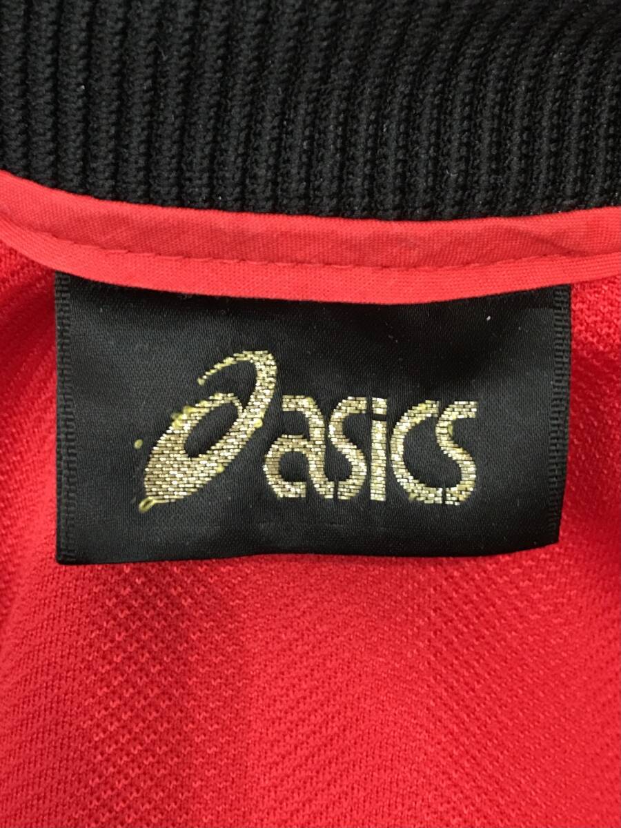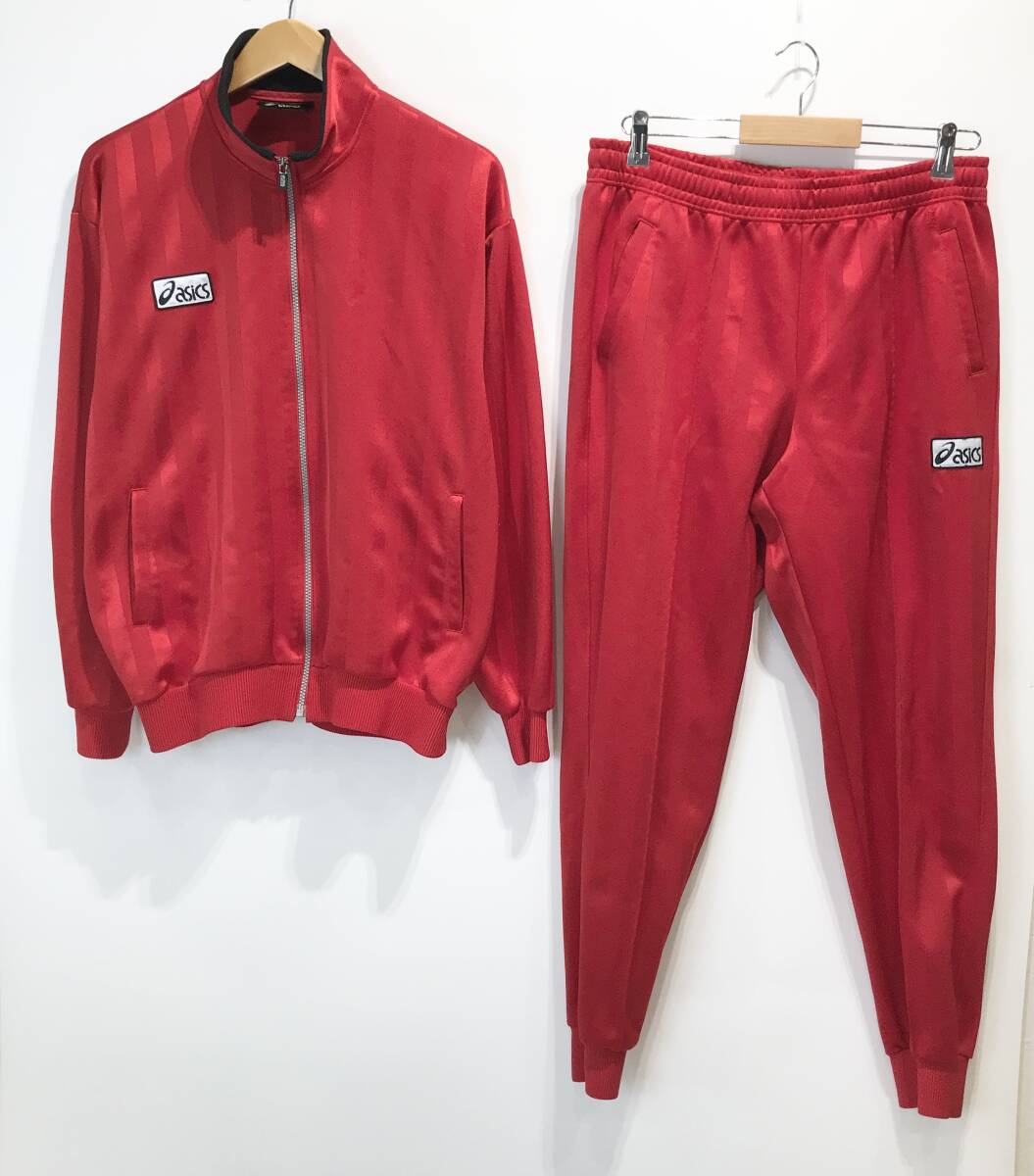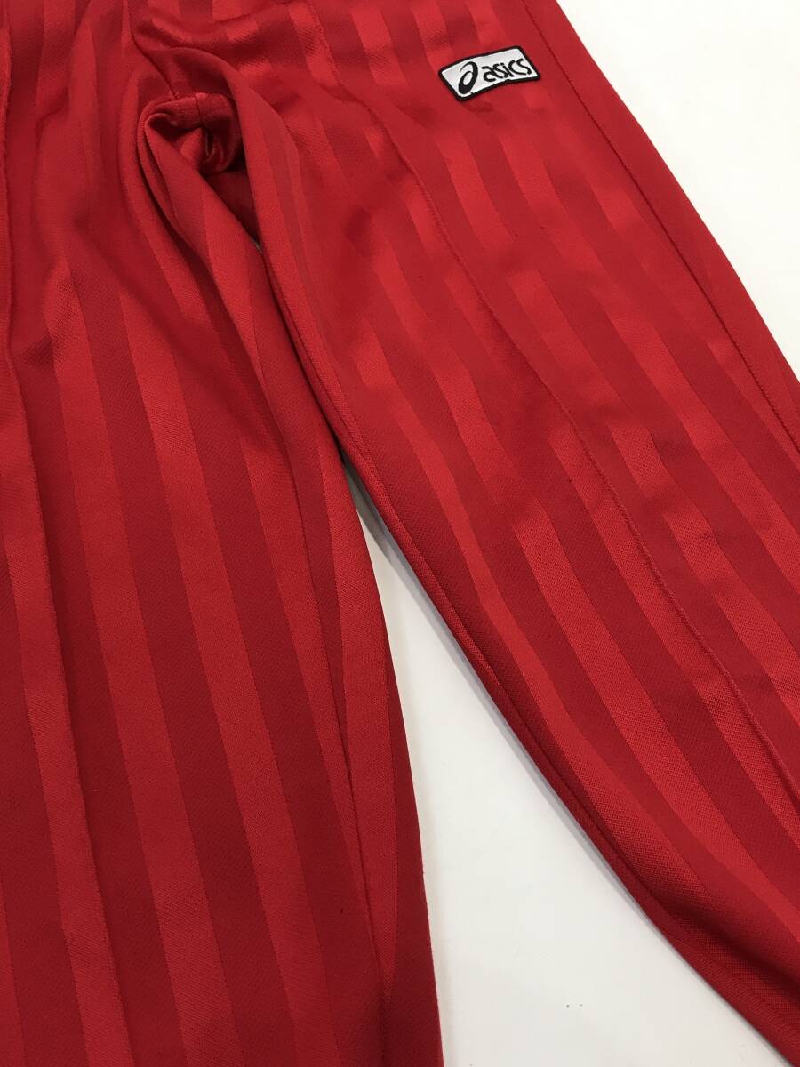 asics ジャージ 上下セットアップ ストライプ柄 トラックジャケット ロングパンツ スポーツウェア レッド XST215 アシックス SIZE:O,XO■1117S ボトムス:ウエストゴム入り、裾ジップ付き |