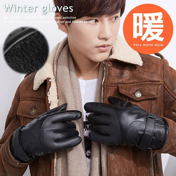 超暖!内ボア 手袋 メンズ グローブ スマホ対応 PU レザー iphone 対応 7993861