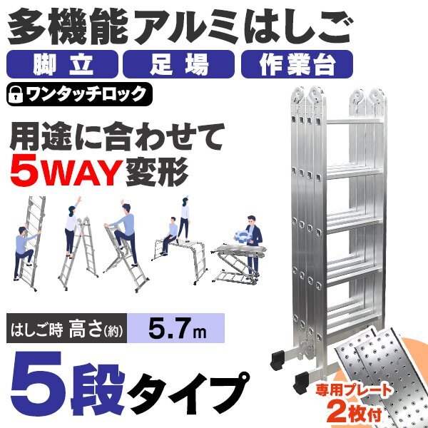 多機能アルミはしご 折りたたみ式 梯子 専用プレート2枚付 5段タイプ 5.7m |