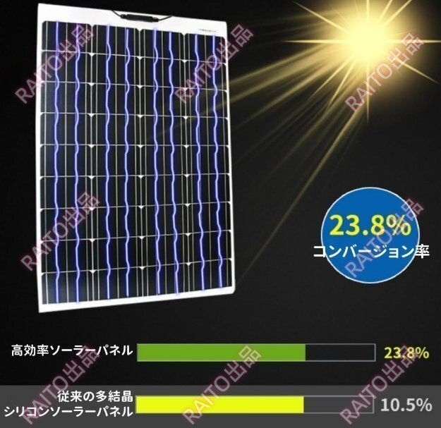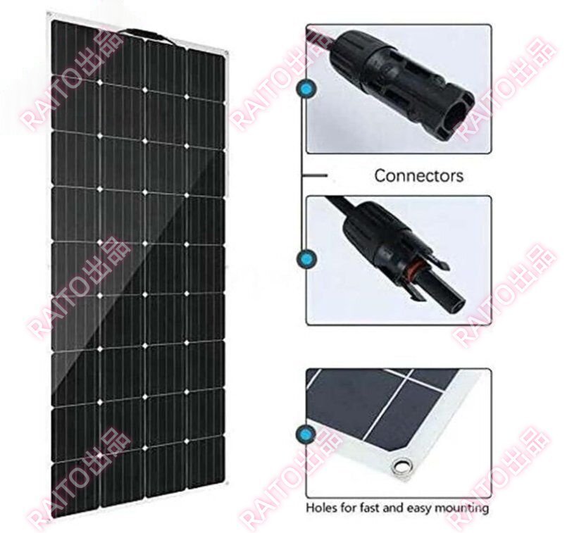 • 【高い耐久性】: フレキシブルなソーラーパネルは厳格にテストされており、パネルは強い風圧、積雪、極端な温度に耐えるように設計されており、ジャンクションボックスは完全に防水性があり、あらゆる気象条件での屋外使用に適しています。
