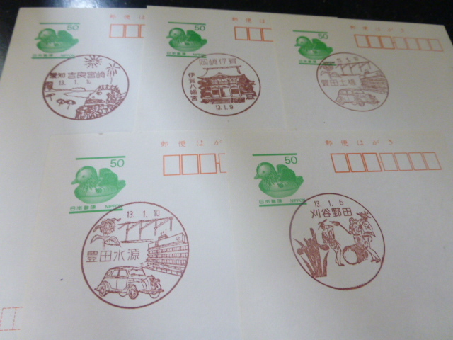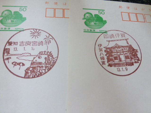 ☆鴛鴦はがき 初日風景印 愛知5枚 吉良宮崎ほか