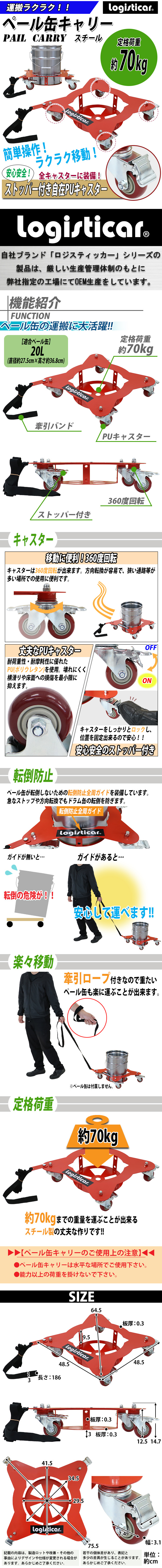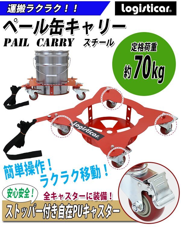 | 商品名 | 送料無料 ペール缶キャリー 定格荷重約70kg 全キャスターストッパー付き スチール 赤 ペール缶用キャリー ペール缶ドーリー 台車 ペール缶 運搬車 台車 ペール台車 缶キャリー キャリー ペールキャリー ペールドーリー カート 運送 ペール缶運搬車 RED レッド pailcarry55y |