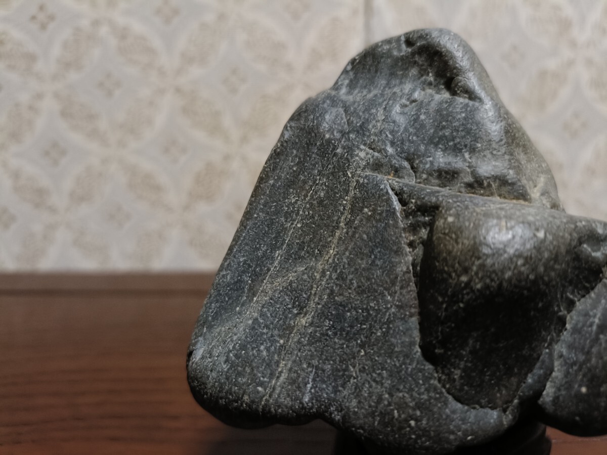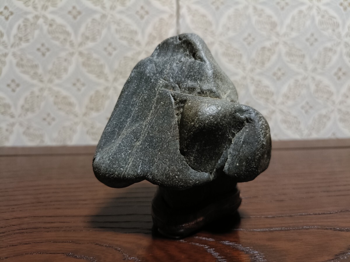 天然うぶのままの姿が非常に魅力的で、裏面まで自然な皺・襞が豊か。卓上に置けば景色がふっと立ち上がる存在感があり、書斎や床の間でも、ひときわ気韻が漂います。小品ながら山中深庵の静けさを凝縮したような、味わい深い茅舎石です。どうぞこの機会にご愛蔵ください。