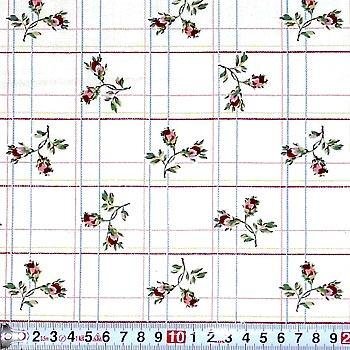 絵画のような筆遣いの赤いバラを白地の赤いチェックに重ねて描いています。
