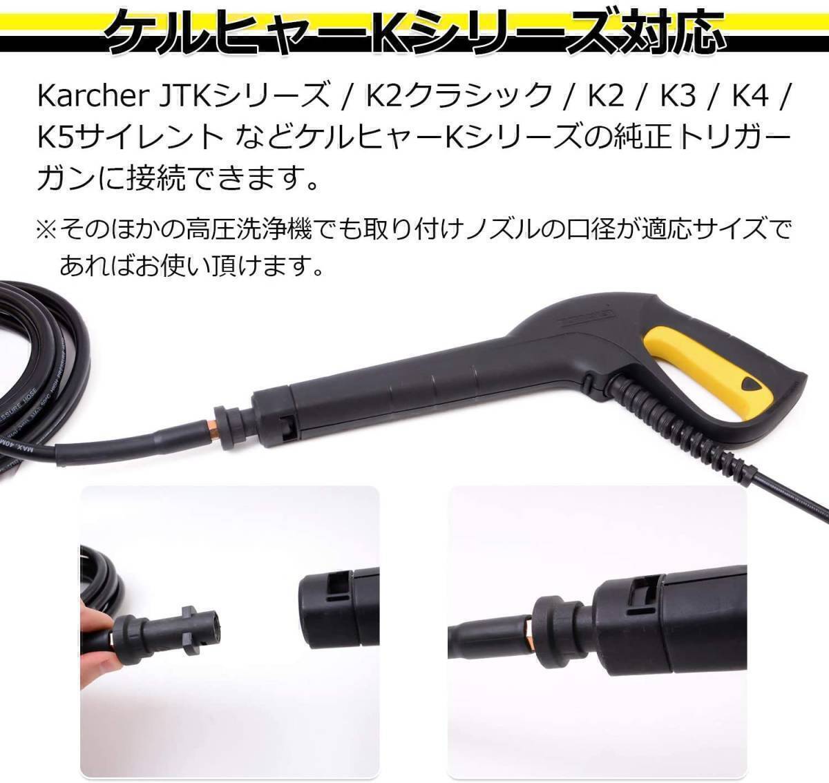 Karcher K2、K2クラシック、K2,K3,K4,K5サイレント、ケルヒャーKシリーズの黄色と黒のツートンガンに接続できます。