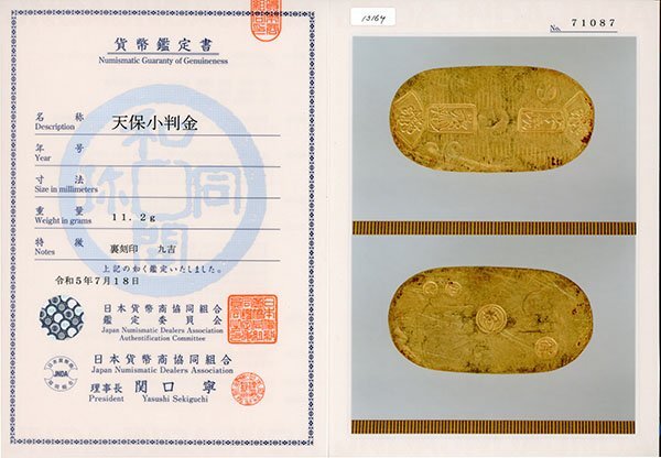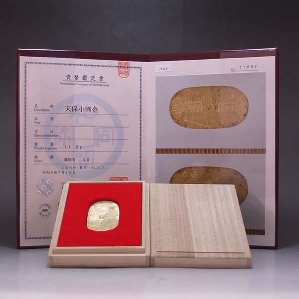 【おたからや】天保小判金/裏刻印 九吉/日本貨幣商協同組合鑑定書付き |