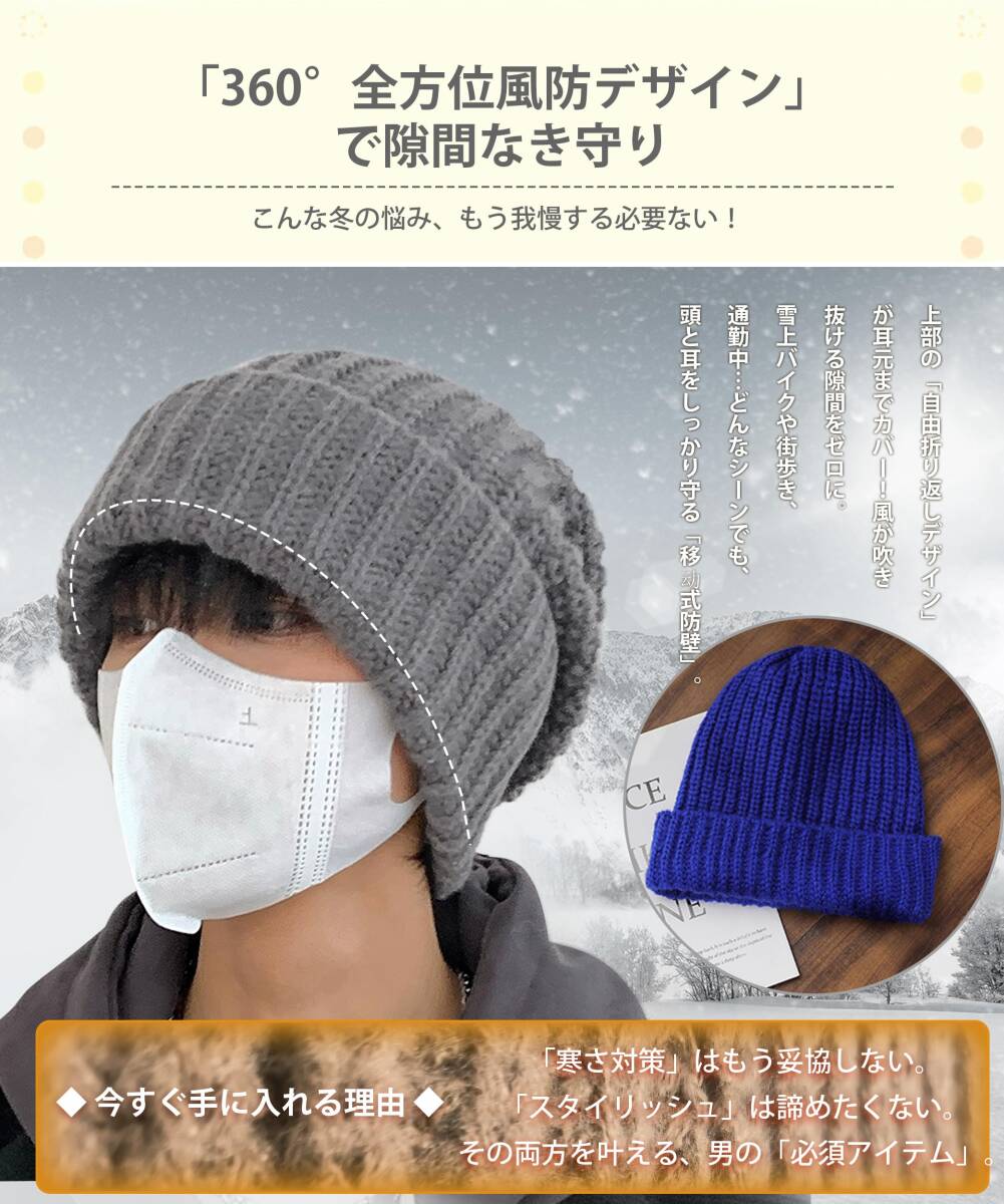 【スタイリッシュで暖かいニット帽】MOWO冬 メンズ ニット帽は、柔らかなニット生地を使用し、天然の空気層構造を持つ繊維で作られており、保温効果が30%向上します。マイナス10℃の厳しい寒さでも頭部を温かく保ちます。大きいサイズ ニット帽の上部折り返しデザインにより、頭部と耳の周辺を厚く保護し、360°全方位から寒風から守ります。無地の帽子 メンズはシンプルながらスタイリッシュで、この冬のファッショントレンドをリードします。