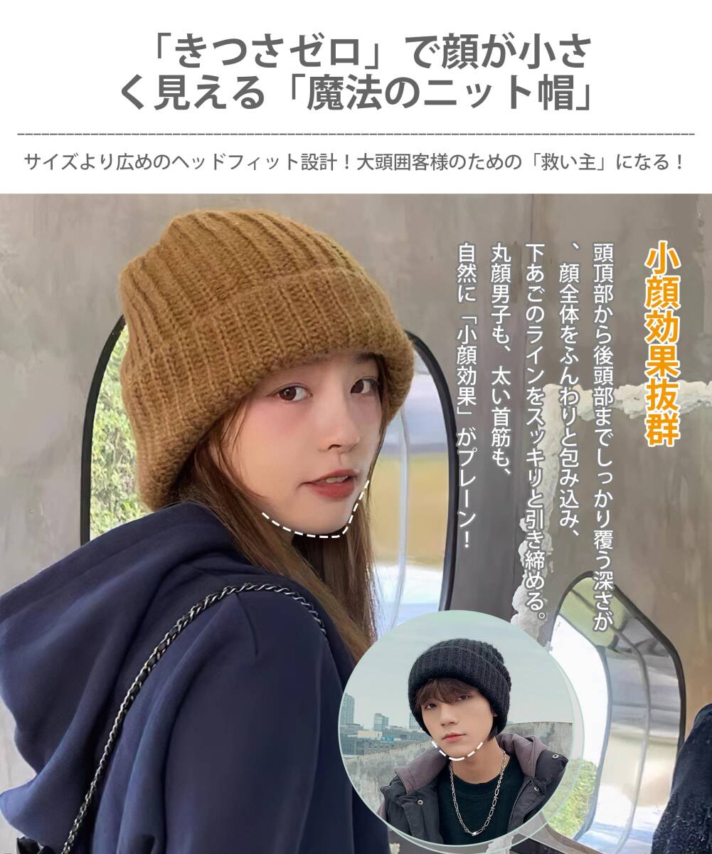 [MOWO] ニット帽 メンズ レディース 帽子 冬 【大きいサイズ・保温性Max・ファッション感】 防寒帽子 ビーニー 保温 防風 厚手 暖かい 小顔効果 トレッチ性 柔らかい おしゃれ 男女兼用 街ブラ・スポーツ・通勤通学・旅行 54-68cm