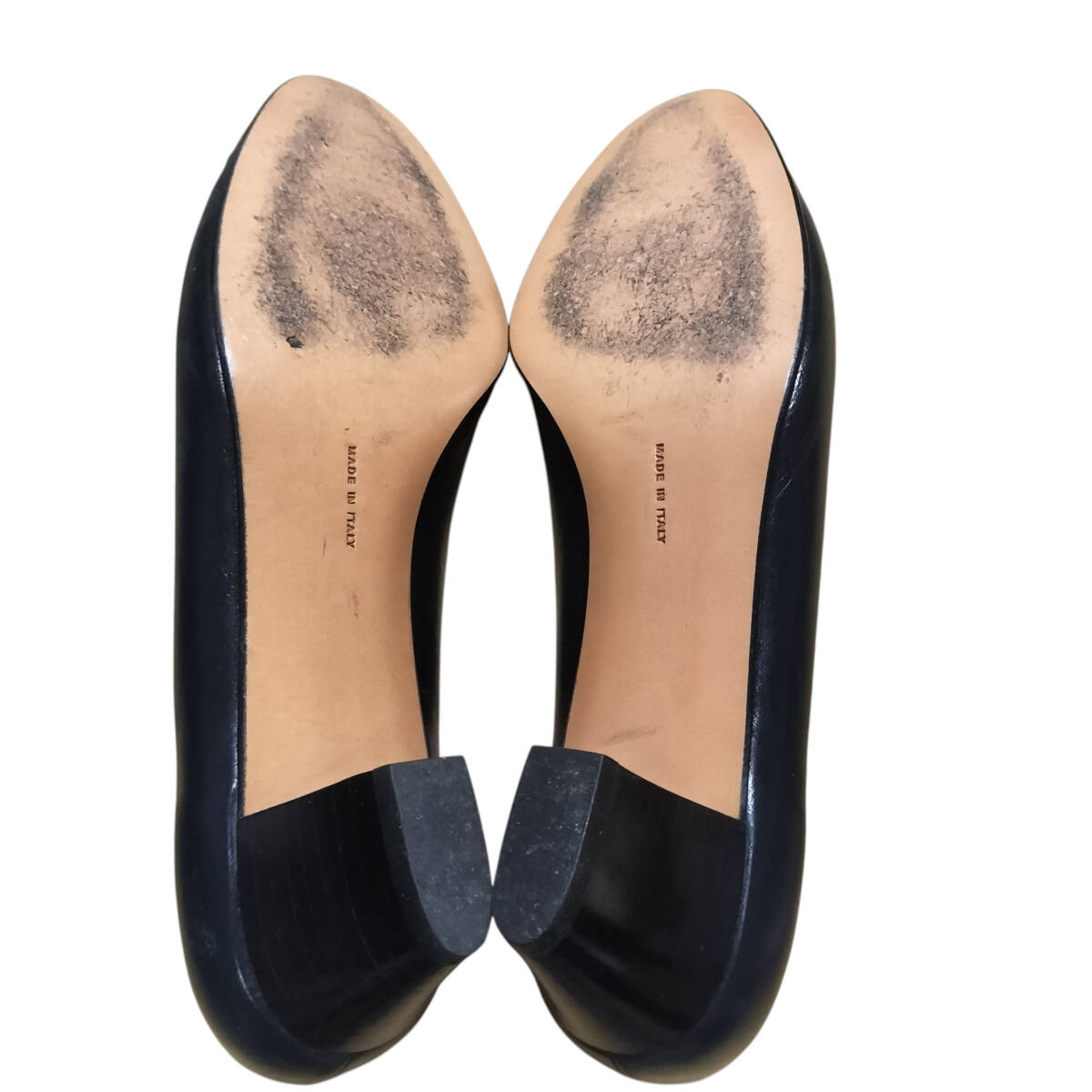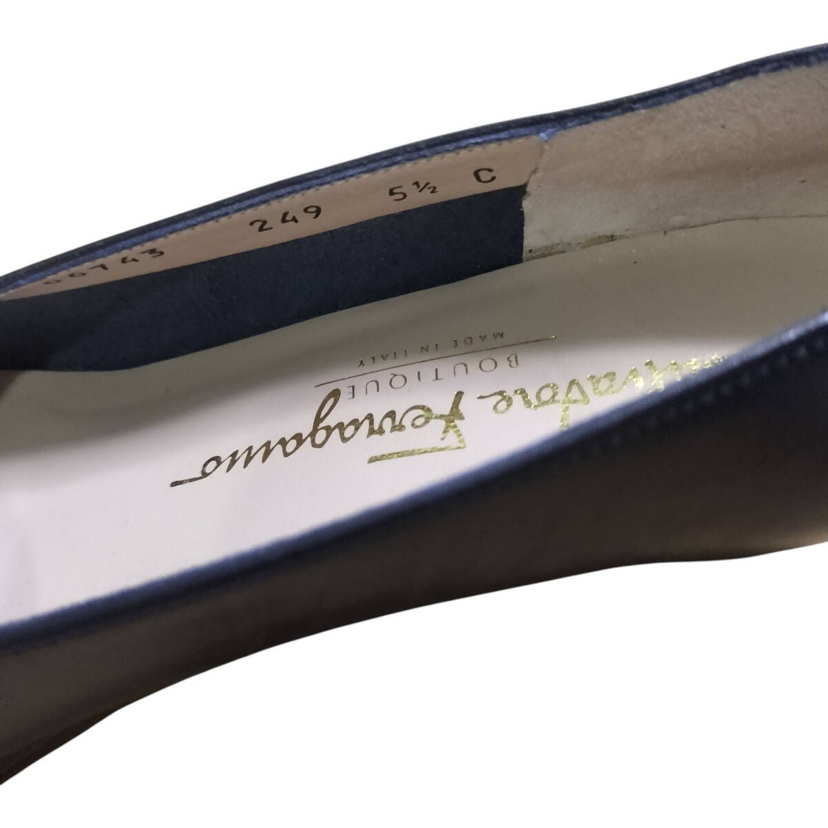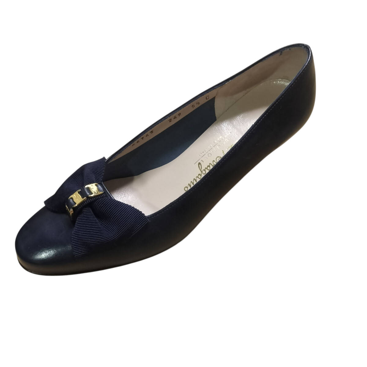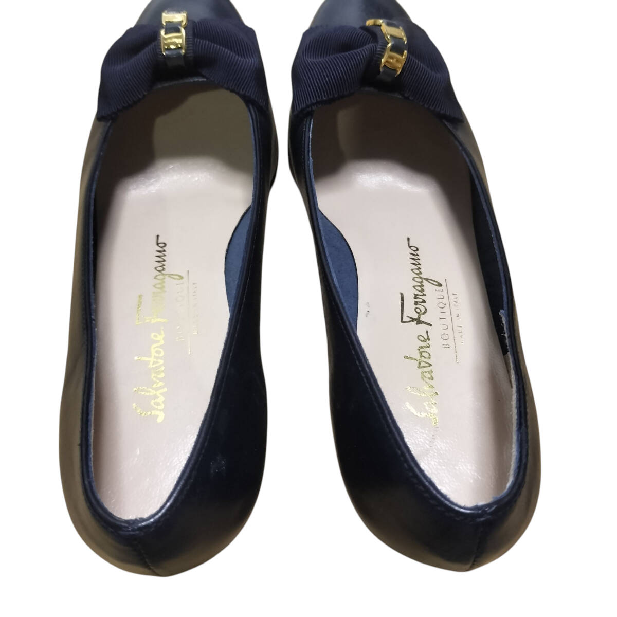 【美品】Salvatore Ferragamo サルヴァトーレフェラガモ フェラガモ パンプス ネイビー 5.5C 22.5cm相当 レザー リボン ガンチーニ