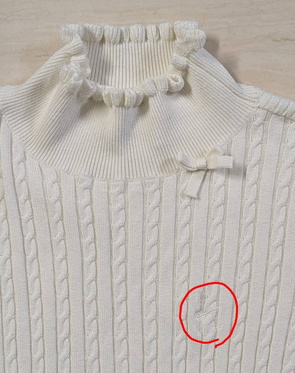 画像丸印箇所に、組曲のKマークの刺繍装飾が、あります。