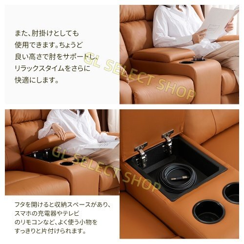 リクライニングチェア リクライニングソファ リクライニング 左右独立調節 オットマン一体型 電動ソファ 耐圧分散 二人掛け【キャメル】