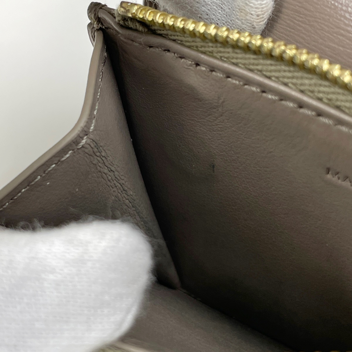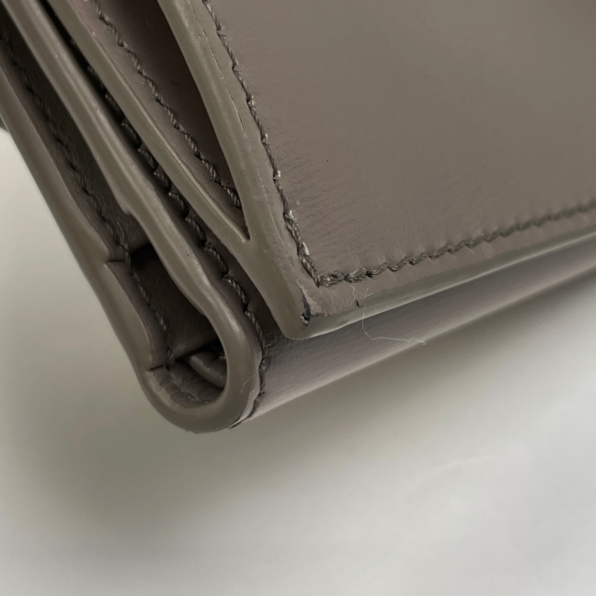 | 《全体》型崩れ、生活臭、スレ、キズ、シワ、汚れ 《内側》押し跡 《フチ》亀裂 《コインケース》押し跡、ファスナー周り毛羽立ち 《金具》小キズ 《箱・保存袋》劣化 |