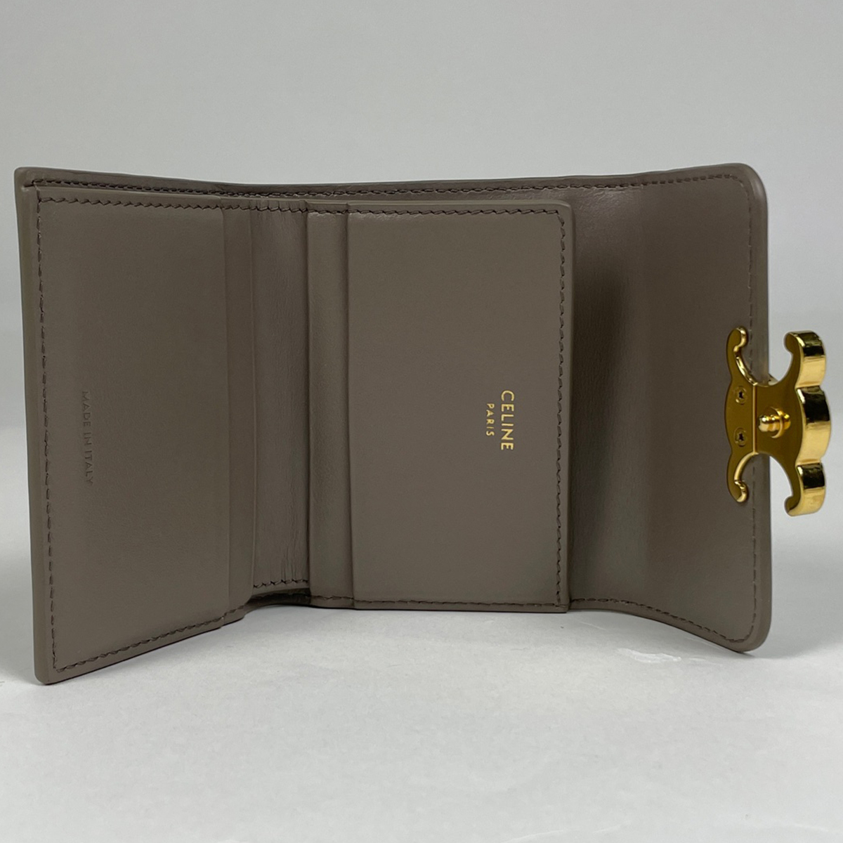 | セリーヌ CELINE トリオンフ 三つ折り財布 ミニ コインケース付き 三つ折り財布 レザー グレージュ レディース 【中古】 |