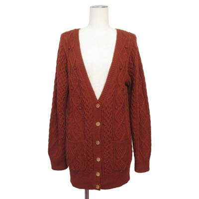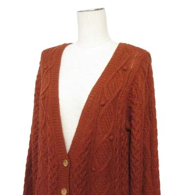 チャオパニック CIAOPANIC カーディガン ニット ケーブル編み Vネック 長袖 アクリル ウール M ブラウン 茶 レディース