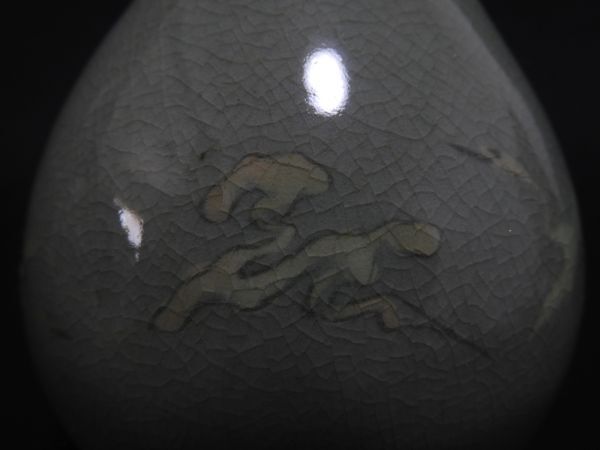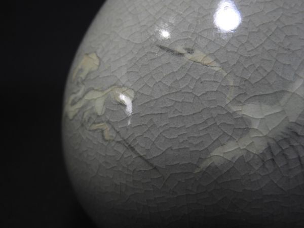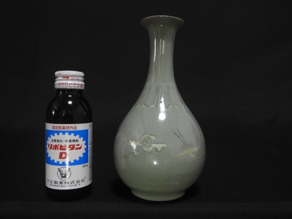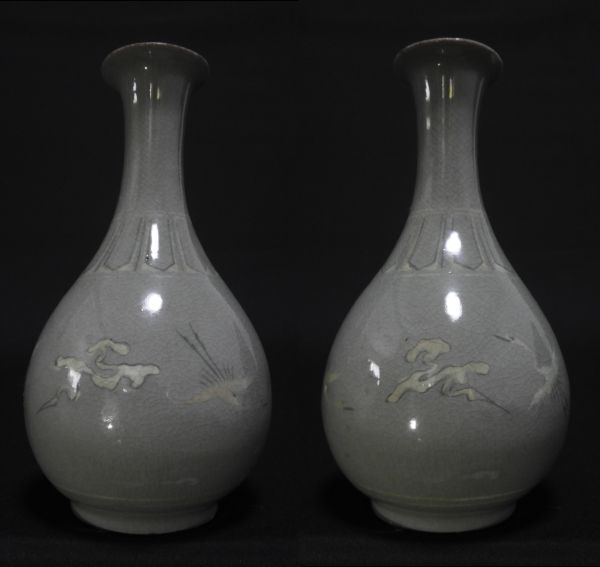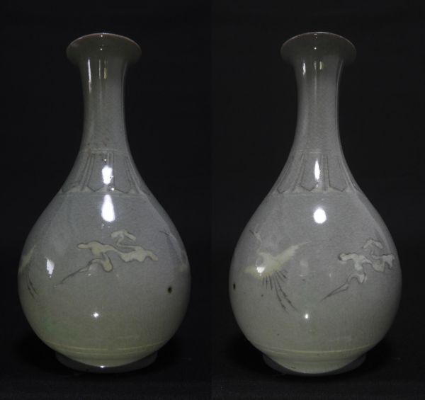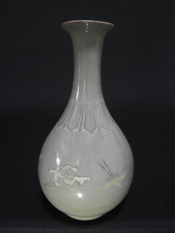 一輪挿し 鶴雲海 象嵌 白黒 高麗青磁 【送料無料】