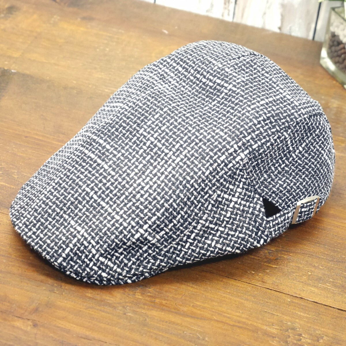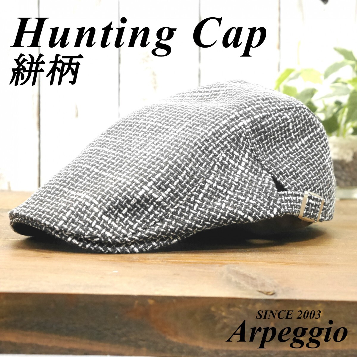 絣柄 ハンチング ブラック シンプル サイズ調整可 送料\450 男女OK!