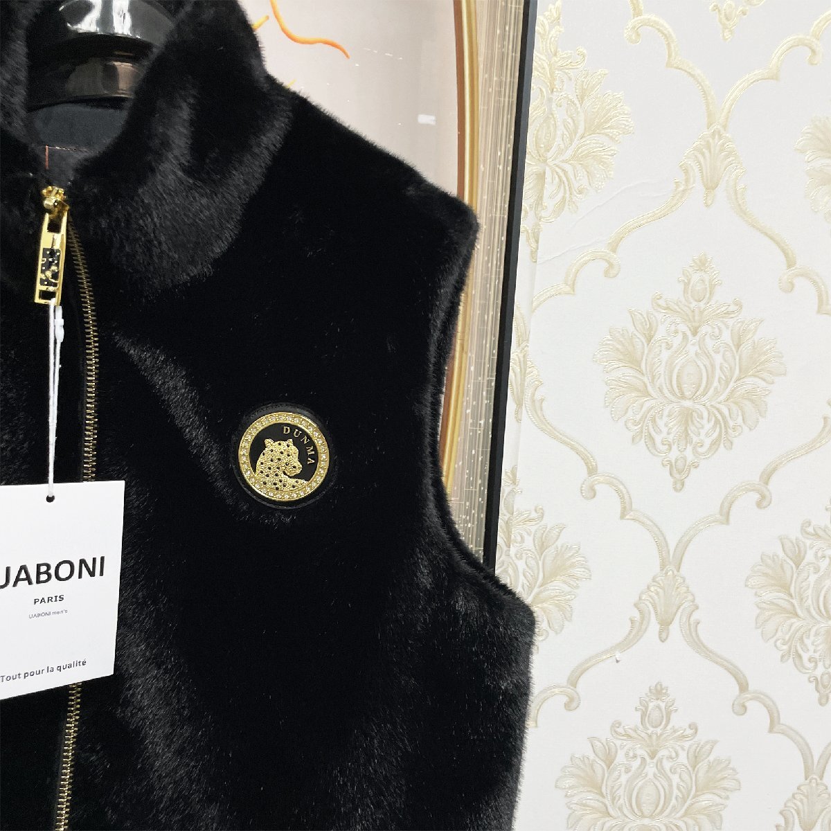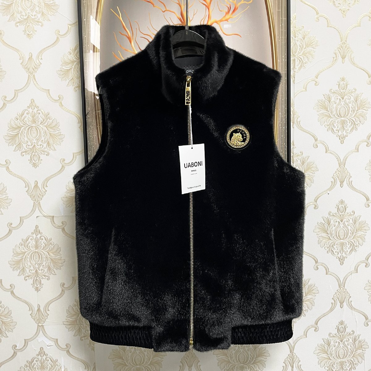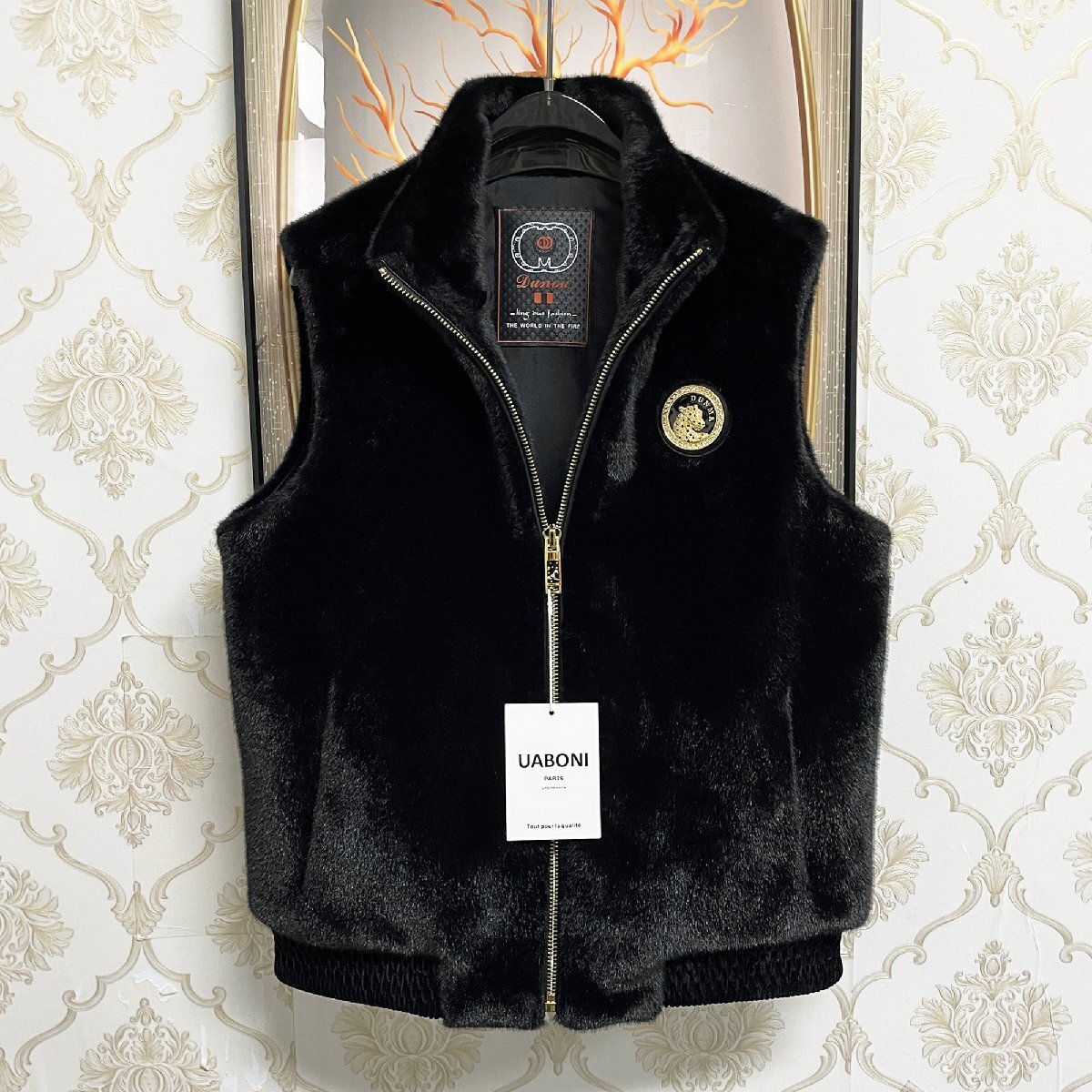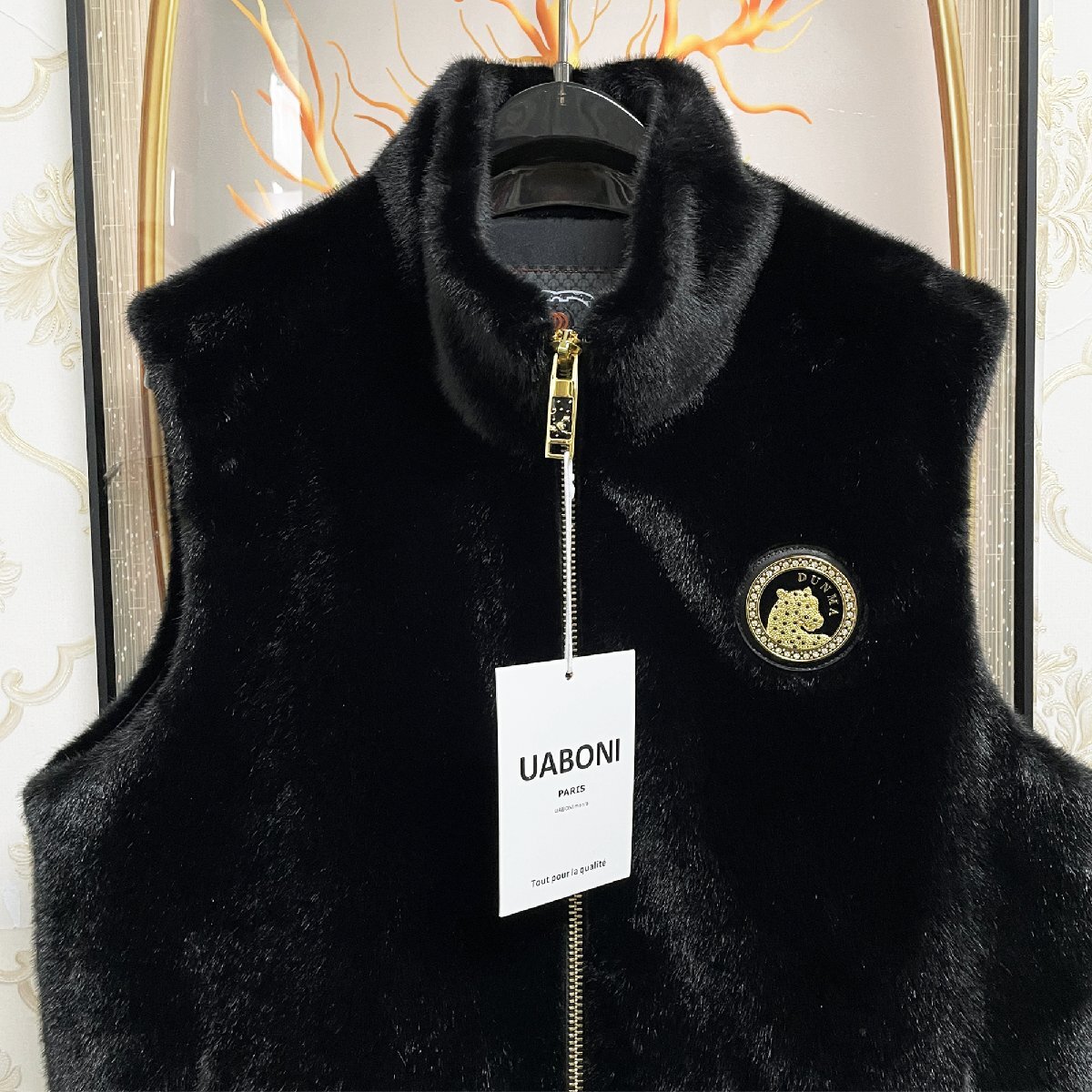 絶賛EU製&定価8万◆UABONI*パリ発*豪華毛皮・ファーベスト・防寒 ふんわり 滑らか 艶 高級 袖なし 立ち襟 アウター 真冬 M/46サイズ