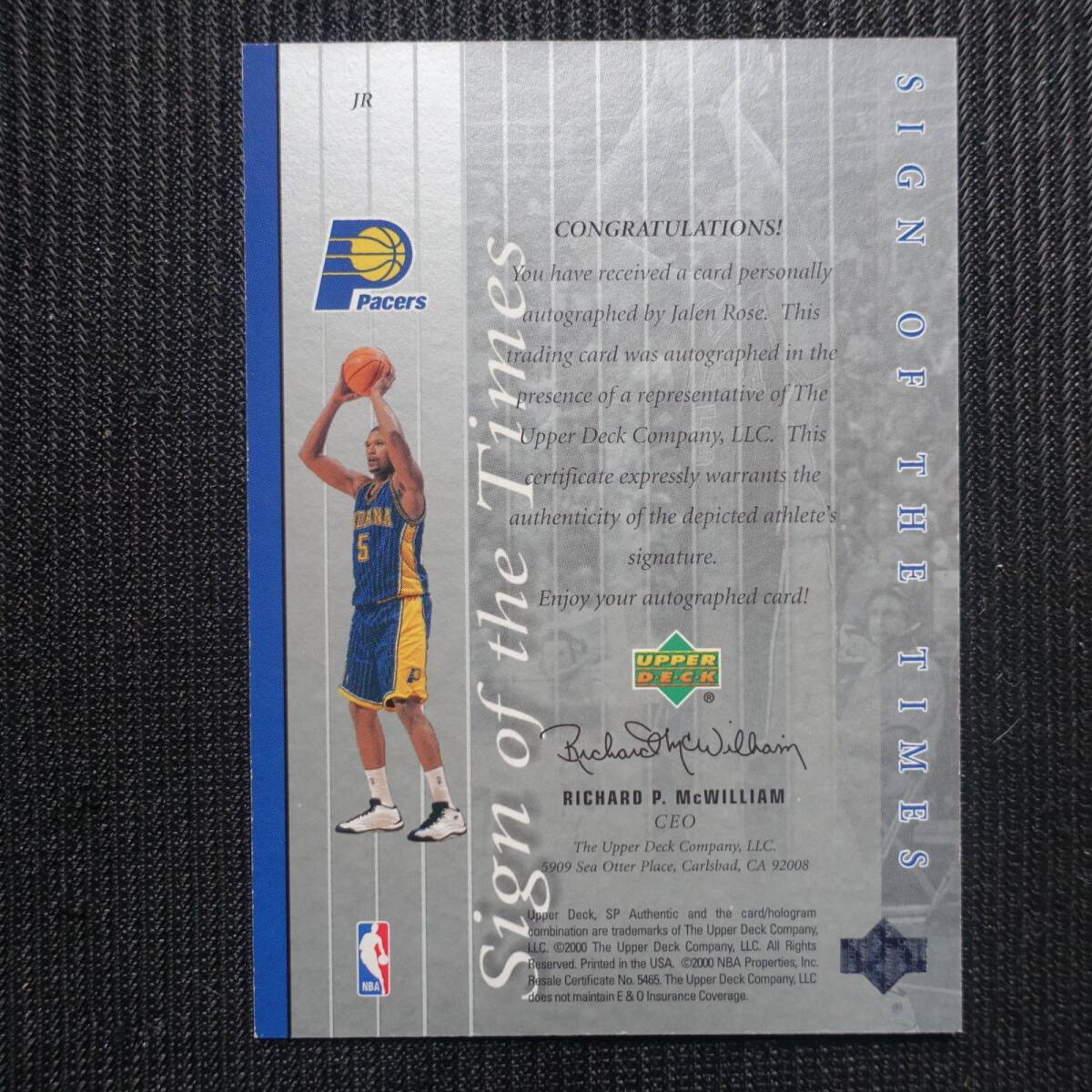 Jalen Rose 1999-2000 Upper Deck SP Authentic Sign of the Times