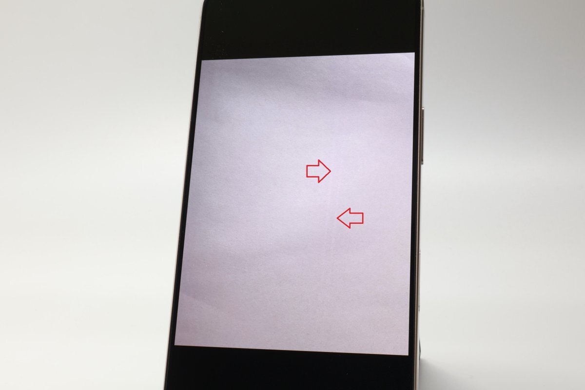 ・インカメラ撮影時、写真ともに縦(赤矢印)に光のラインが写り込みます(写真6 ※インカメラで撮影した写真を撮影してます)