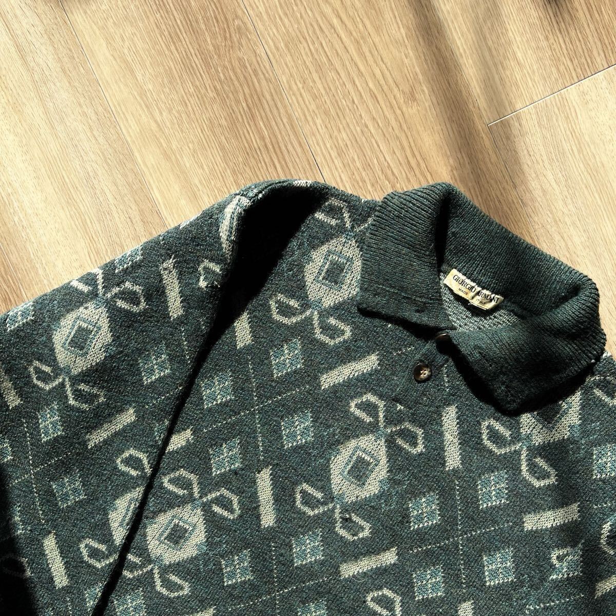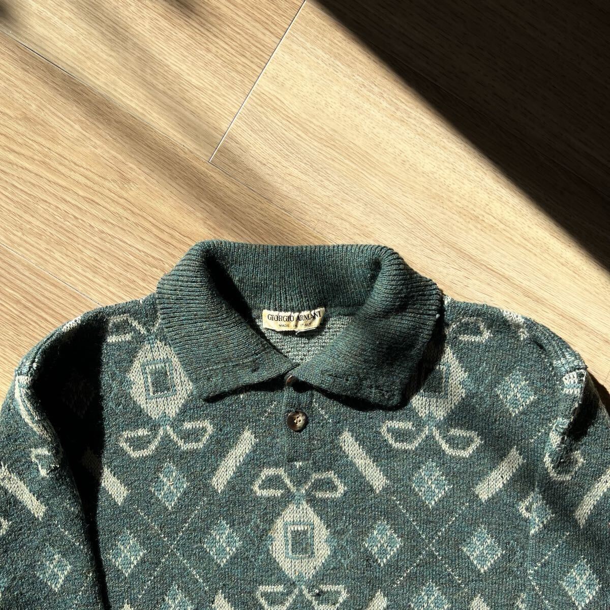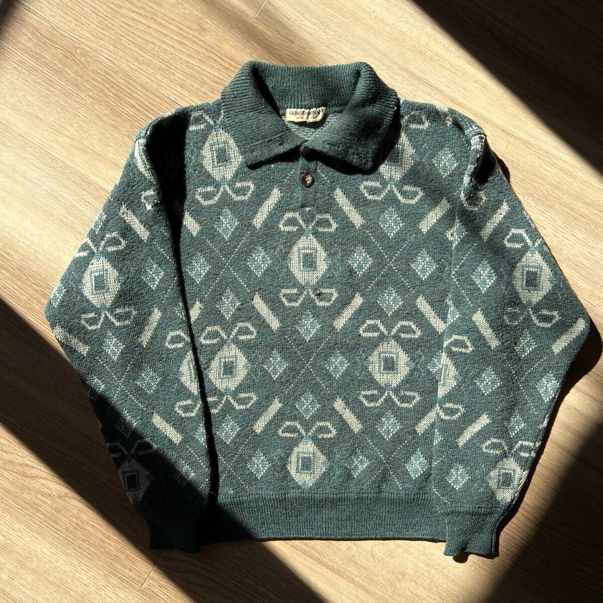 アルマーニのボタンデザインの総柄ニット。
