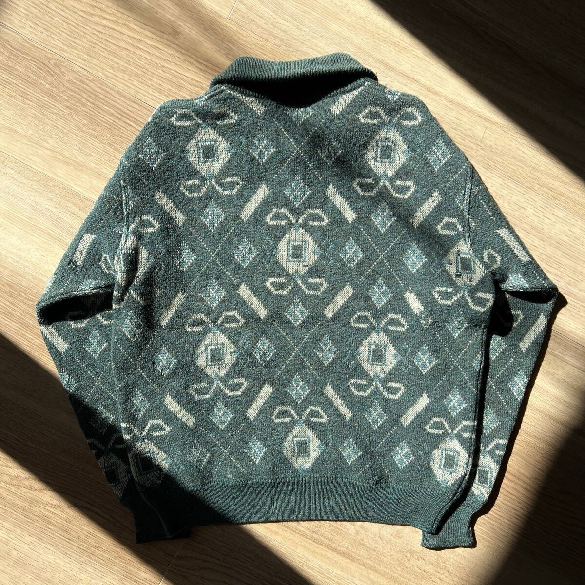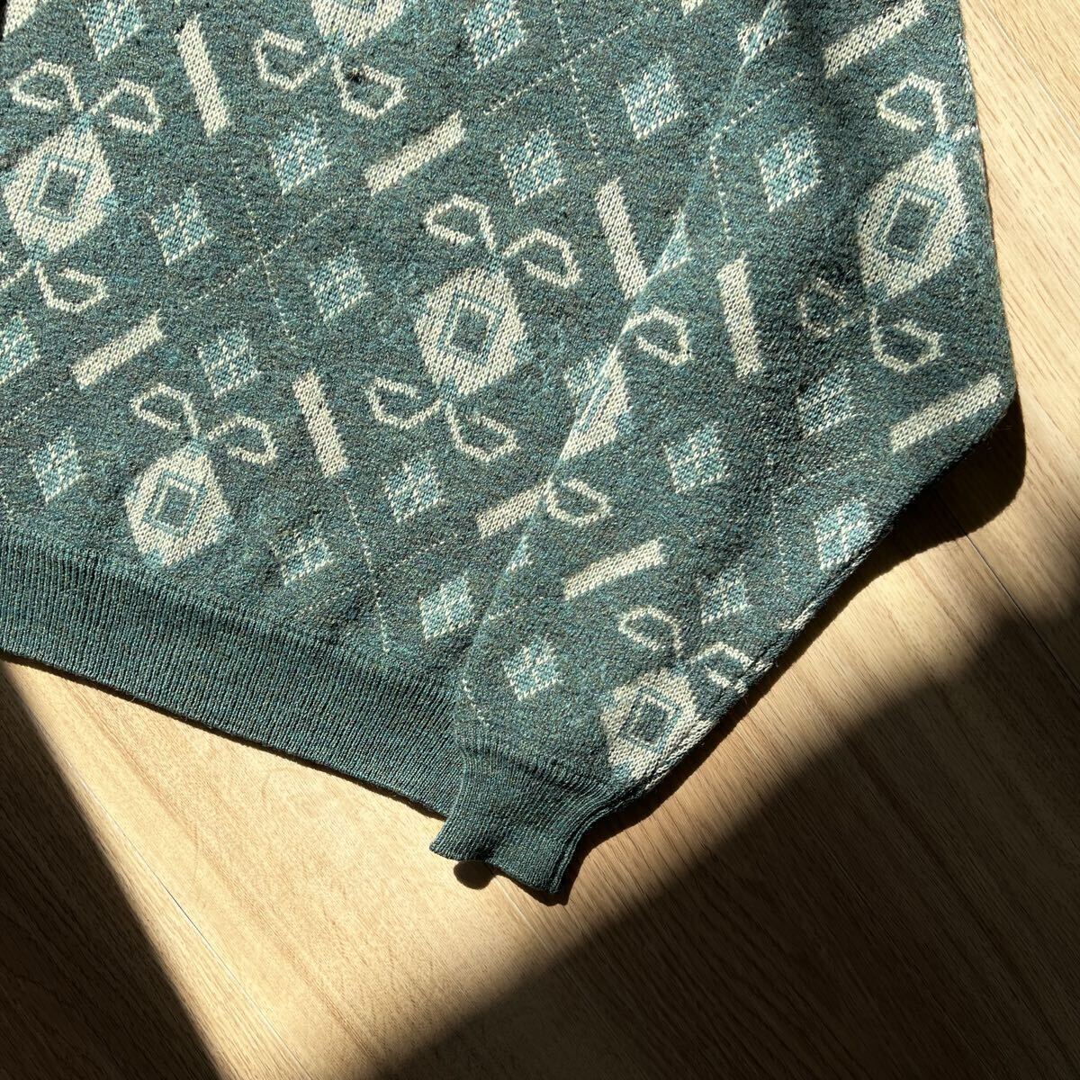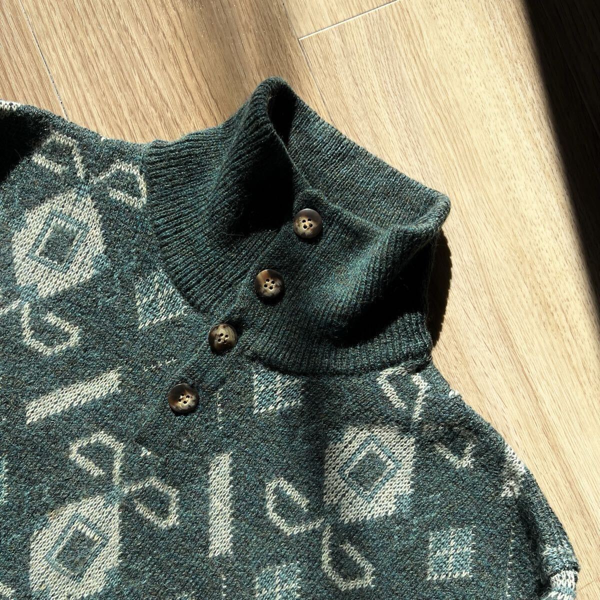 アルマーニのボタンデザインの総柄ニット。