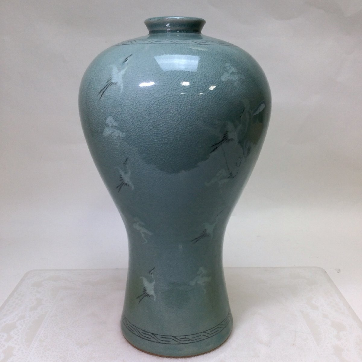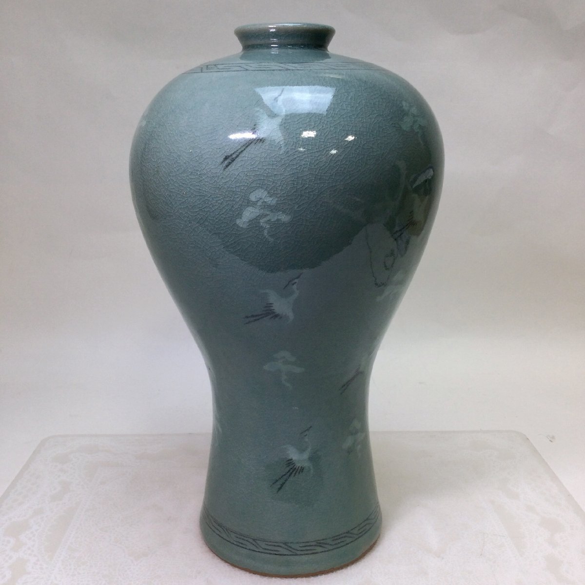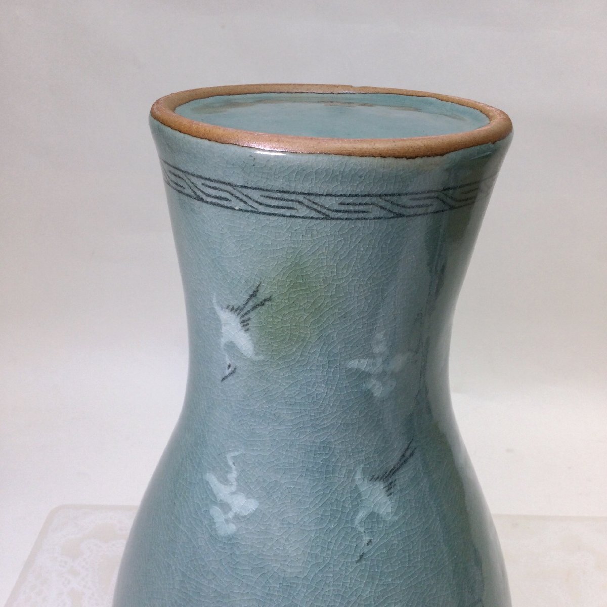 | 高麗青磁 鎮永 花瓶 花器 花入れ フラワーベース 高さ約32cm 陶器 置物 インテリア |