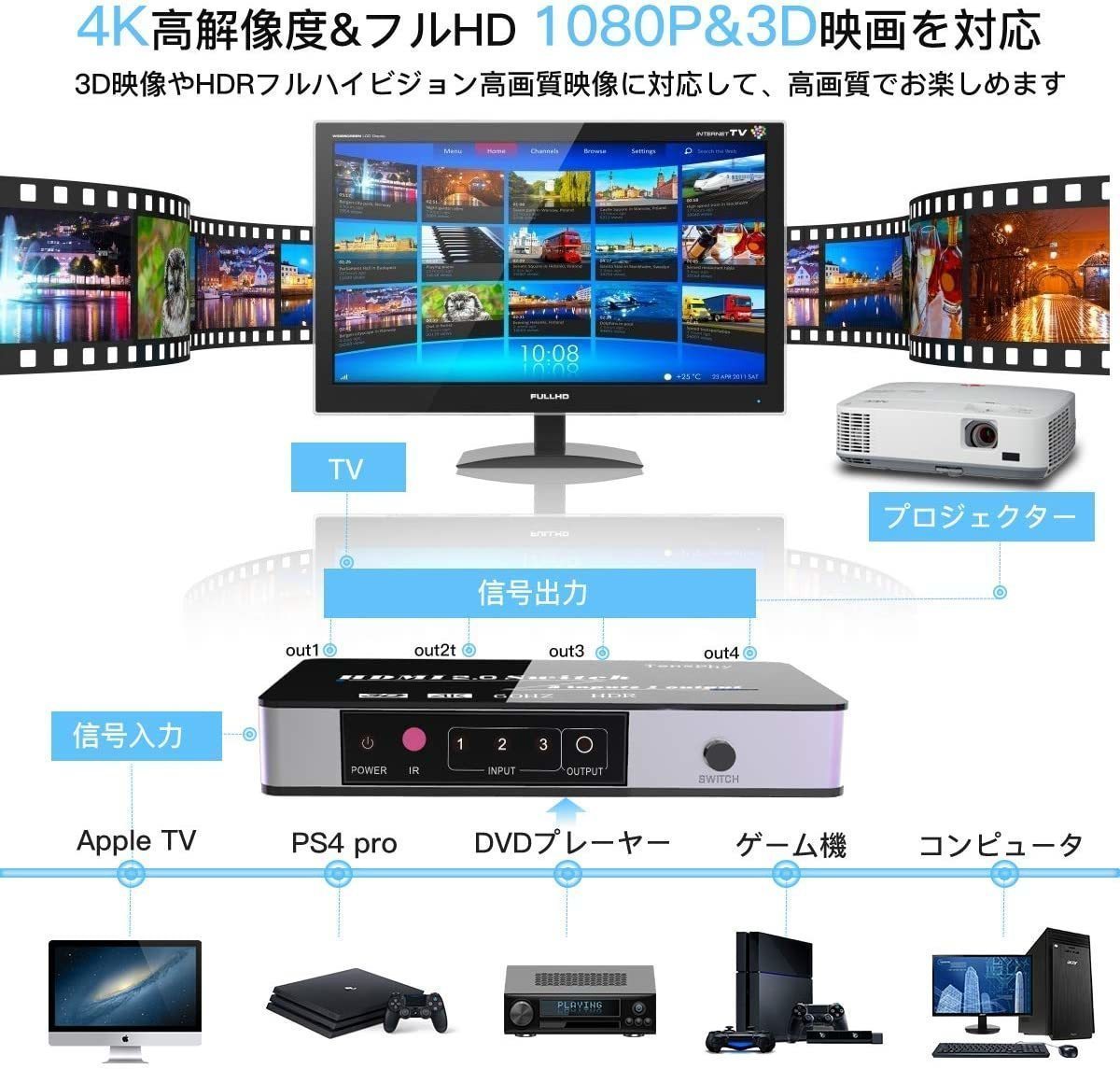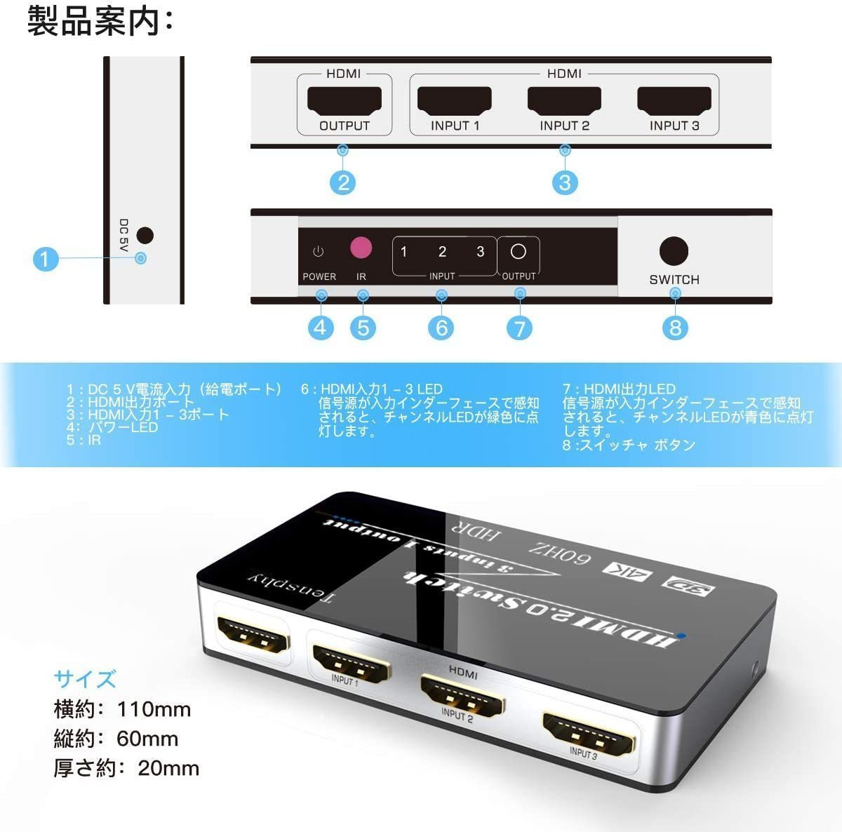 【新品】 Tensphy HDMI 切替器 HDMIセレクター 3入力1出力 HDMI 分配器 自由 切り替え Apple TV Chromecast Switch Xbox PS4 22